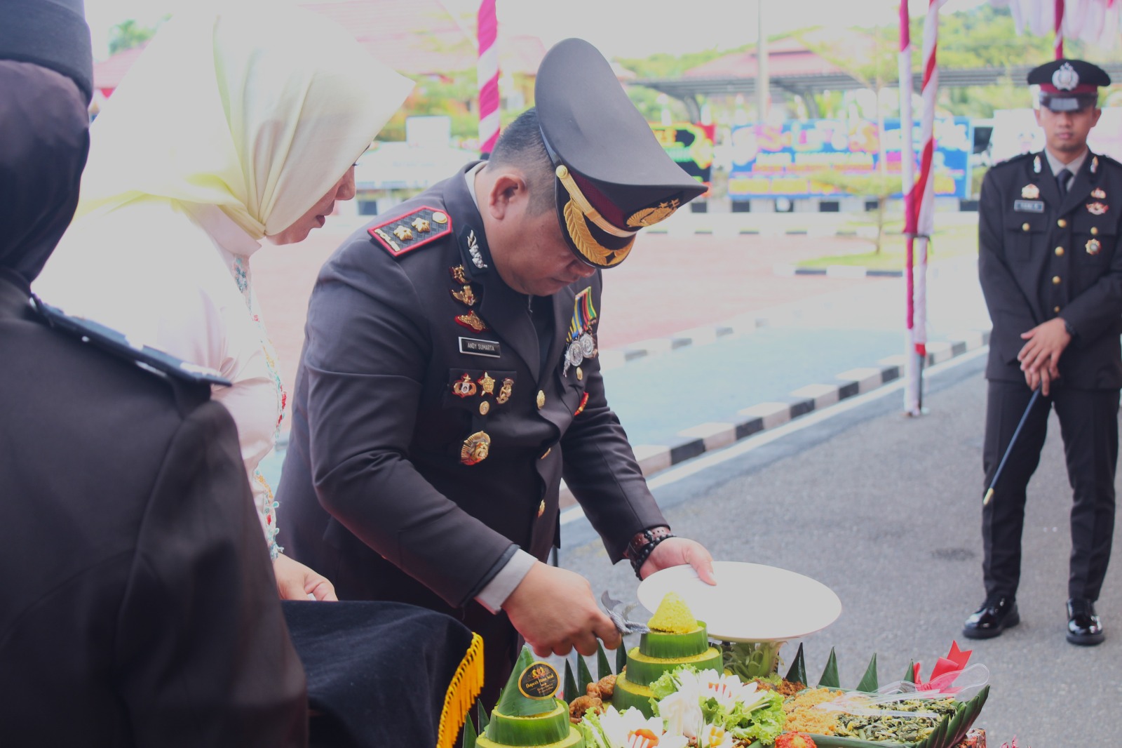 Acara ini diwarnai dengan pemotongan tumpeng oleh Kapolres Aceh Jaya beserta Ibu, yang kemudian diserahkan kepada personel tertua dan termuda. Selain itu, dalam acara ini juga dilakukan penyerahan piagam penghargaan kepada sejumlah personel.