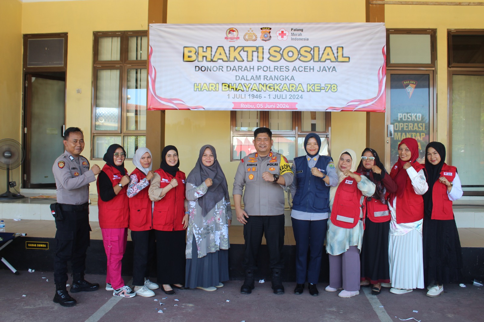 Polres Aceh Jaya Sumbangkan 109 Kantong Darah pada Acara Bhakti Sosial Sambut Hari Bhayangkara ke-78