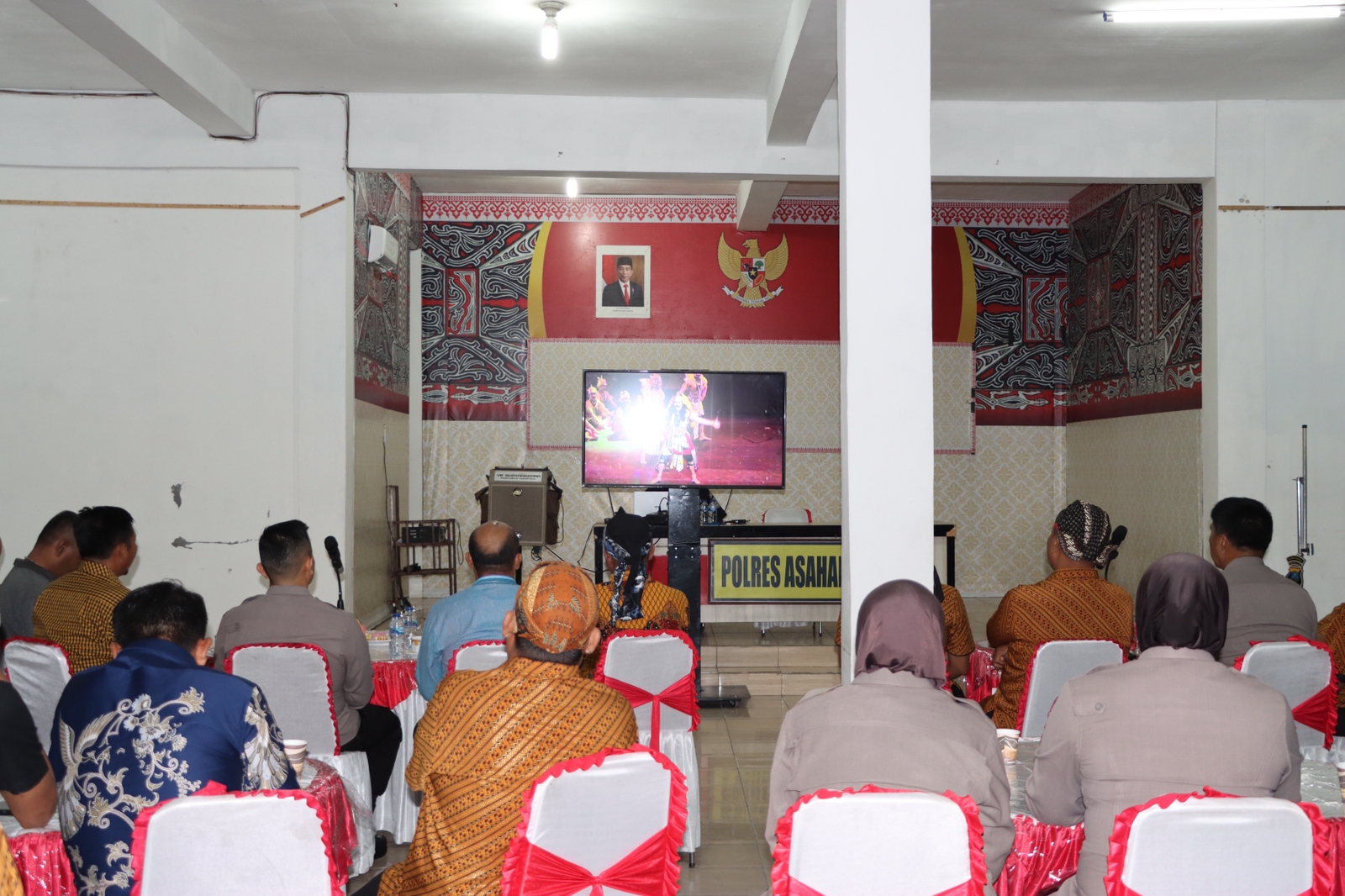 ASAHAN ,ikagawanews.id – Polres Asahan bersama Forkompinda dan Tomas Kabupaten Asahan melaksanakan Nonton bareng Pangelaran Wayang Orang dengan lakon Pandowo Boyong secara online melalui Link YouTube di Aula Wira Satya Lantai I Polres Asahan minggu malam (15/01/2022) sekira jam 19.00 wib.