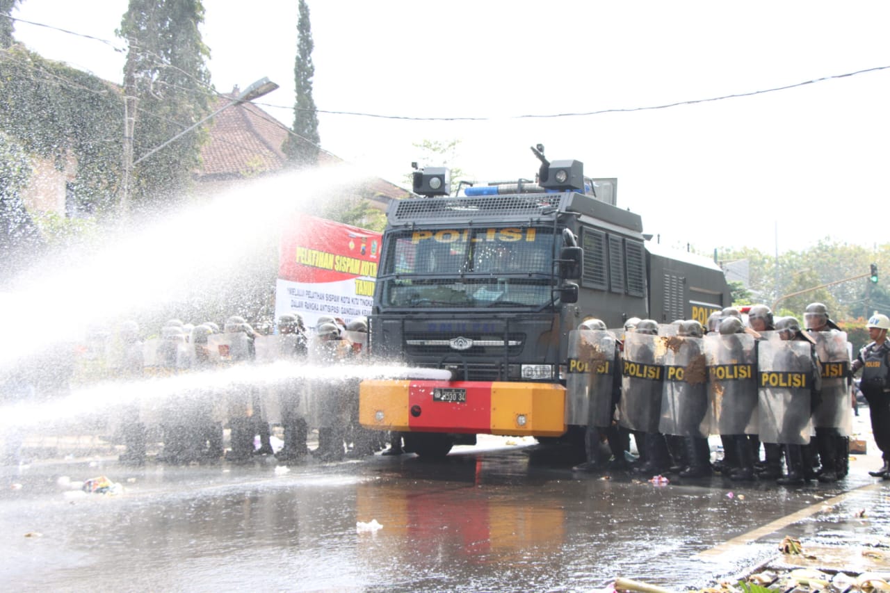 Lalu dilanjut penggelaran securrity barrier, pendorongan massa, penangkapan terhadap provokator, tim kesehatan melakukan tindakan pertolongan korban unras, penembakan gas air mata, penyemprotan water cannon untuk pembubaran massa dan kegiatan lain sesuai SOP.