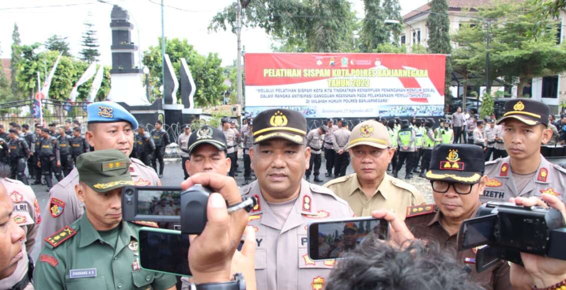 Banjarnegara,ikagawanews.id – Polres Banjarnegara menggelar latihan berjatuk Sistem Pengamanan Kota (Sispamkota) dalam rangka antisipasi kontingensi kamtibmas tahapan pemilu 2024, kegiatan di Alun-alun Banjarnegara, Senin (25/9/2023).