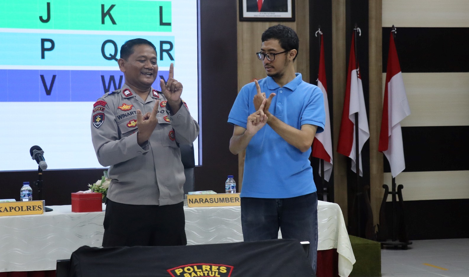 BANTUL,ikagawanews.id – Polres Bantul menggelar kegiatan pelatihan bahasa isyarat dan sensitivitas disabilitas, di Aula Wira Pratama Polres Bantul, Kamis (12/9/2024).