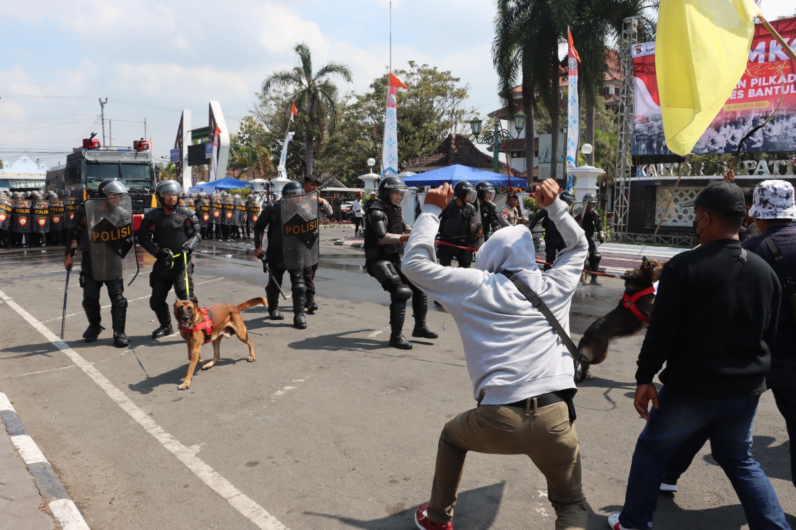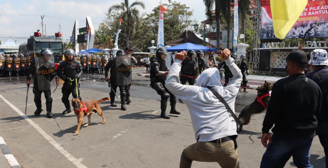 Sebanyak 662 personel gabungan Polres Bantul, Satbrimob Polda DIY, Unit Polisi Satwa Ditsamapta Polda DIY, Kodim 0729/ Bantul, Satpol PP dan pemangku kepentingan terkait, mengikuti simulasi latihan tersebut yang digelar di Lapangan Paseban, Kabupaten Bantul.