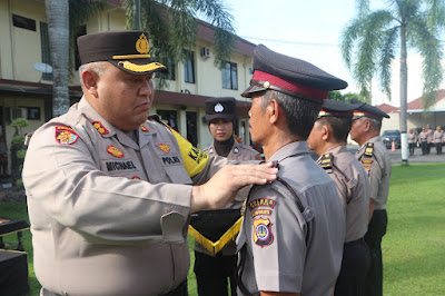 Dalam amanatnya, Kapolres Bantul AKBP Michael R. Risakotta SH SIK menyampaikan apresiasi setinggi-tingginya kepada personel yang naik pangkat.