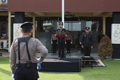 Bertindak selaku Inspektur Upacara (Irup) adalah Wakil Kepala Kepolisian Resor (Wakapolres) Bantul Kompol Ika Shanti Prihandini yang diikuti seluruh Pejabat Utama (PJU), seluruh personel dan ASN di lingkungan Polres Bantul.