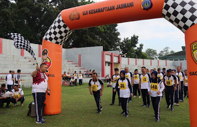 Kapolres menambahkan, pada tes kesamaptaan jasmani itu, meliputi lari 12 menit dan push up. Kemudian sit up, pull up, chinning up untuk wanita serta shuttle run.
