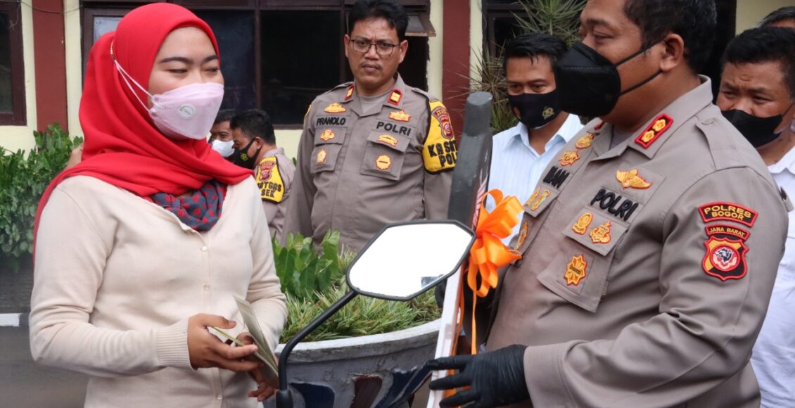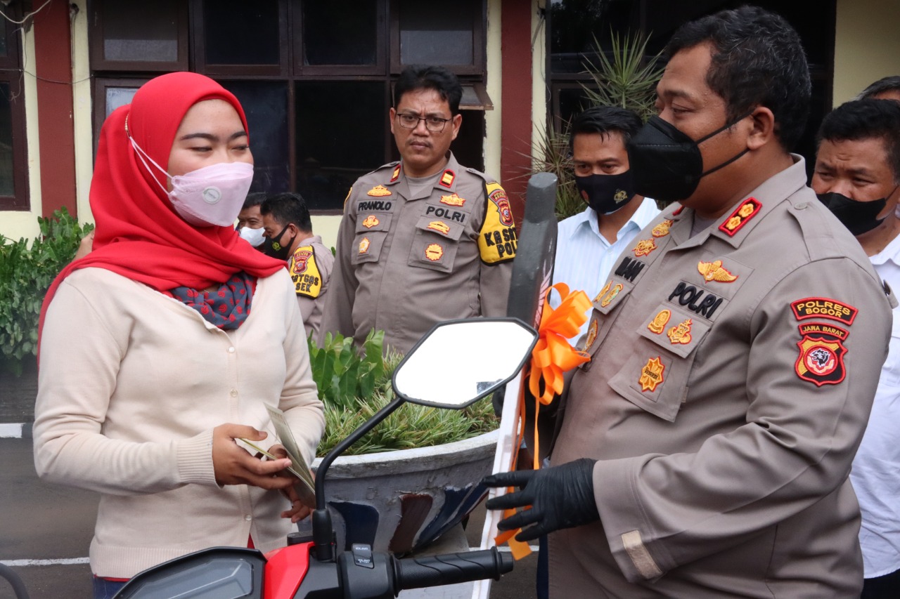 POLRES BOGOR KEMBALIKAN KENDARAAN HILANG MILIK KORBAN PENCURIAN
