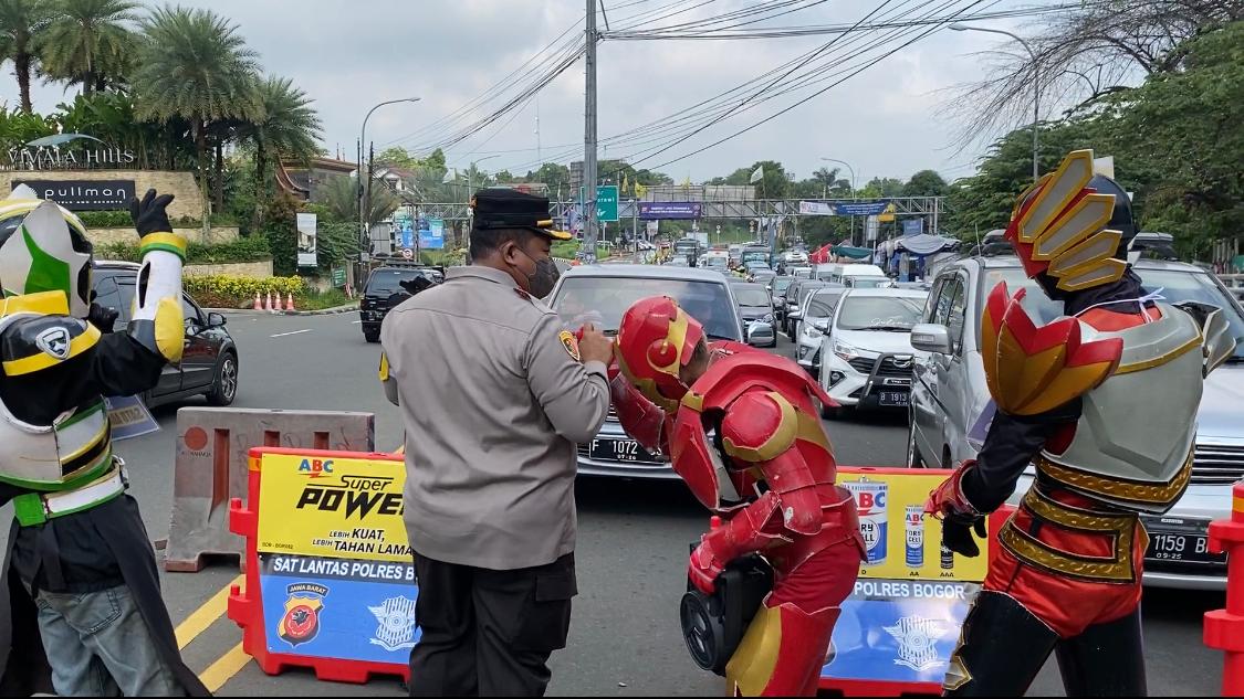 Kapolres Bogor AKBP Iman Imanuddin S.H., S.I.K.,M.H mengungkapkan bahwa sejumlah badut yang diturunkan tersebut di peruntukan untuk menghibur warga yang menunggu proses one way, sehingga masyarakat ini merasa terhibur.