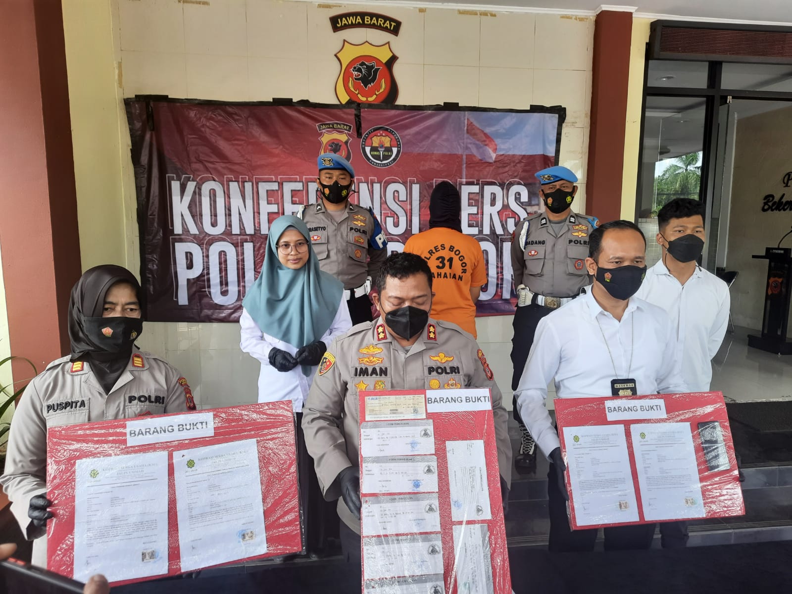 Dari pengungkapan tersebut pihak Polres Bogor pun berhasil mengamankan barang bukti beberapa Surat Form Pemasukan dan Pengeluaran, 1 lembar Cek BCA, 4 lembar surat perjanjian, 1 lembar surat kesepakatan, 5 lembar surat pernyataan jaminan, dan 1 buah handphone merek Vivo.