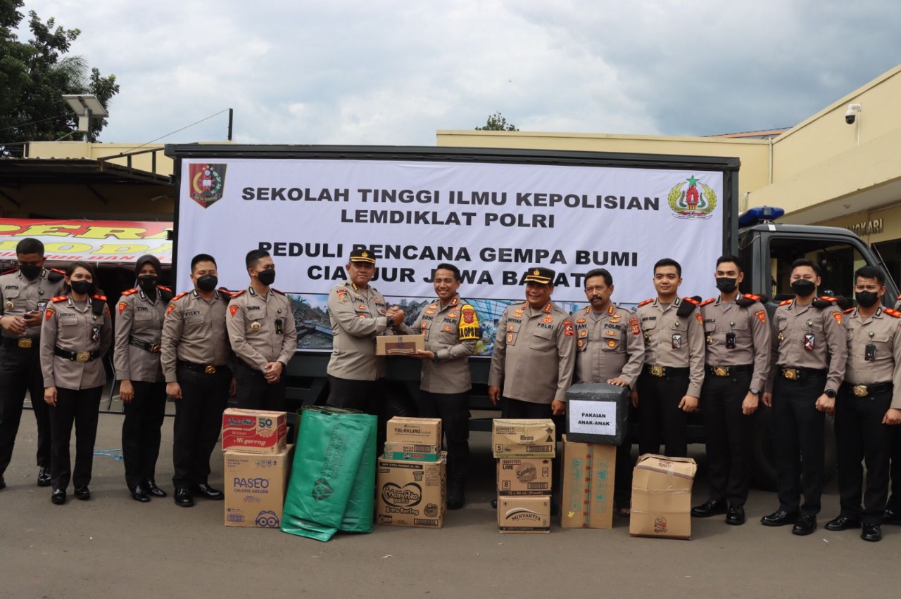 CIANJUR,ikagawanews.id – Polres Cianjur menerima bantuan dari Sekolah Tinggi Ilmu Kepolisian (STIK) Lemdiklat Polri untuk korban gempa Cianjur yang diserahkan langsung oleh Kabag SDM STIK Lemdiklat Polri Kombes Pol. Heri Sasangka S.I.K dan diterima langsung oleh Kapolres Cianjur AKBP Doni Hermawan, S.H., S.I.K., M.Si., Rabu (30/11).