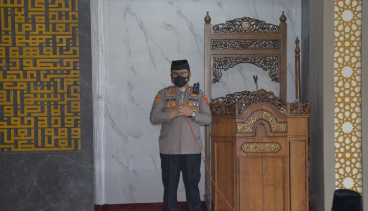 Sambutan Kapolres Cirebon Kota AKBP M. FAHRI SIREGAR, S.H., S.I.K., M.H ” Kita hadir disini bersama bertujuan untuk memperingati Peringatan Maulid Nabi besar Muhammad SAW 1443H/2021M. Tugas tugas Polri dan tantangan Polri kedepan tidak lah mudah. Polres Cirebon Kota mempunyai program dekat dan bersahabat, dimana Polres Cirebon Kota datang ke Mushola dan Masjid untuk mewakafkan Al – Quran dan peralatan sholat “. Jelas alumni Akpol 2002 secara singkat namun bermakna ini.