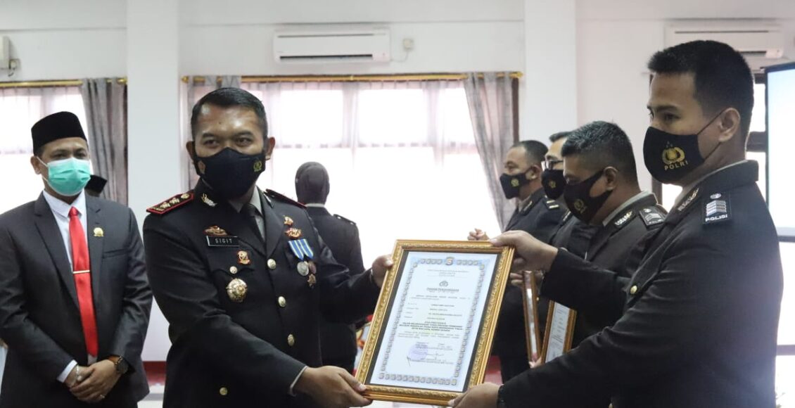Cilegon – Kapolres Cilegon AKBP Sigit Haryono Si.k. S.H. dalam hal ini di wakilkan oleh Kasi Humas Polres Cilegon IPTU Sigit Dermawan S.H. Saat di temui awak media membenarkan bahwa pada hari ini di Hari Bhyangkara ke 75 Kapolres Cilegon memberikan penghargaan kepada personil yang telah berprestasi dalam melaksanakan tugasnya, pemberian penghargaan tersebut berlangsung di aula serba guna Polres Cilegon dengan mengedepankan Protokol kesehatan.
