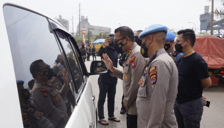 Rangkaian Kegiatan pengecekan pos penyekatan Kapolres beserta rombongan melakukan pengecekan Pos Penyekatan di simpang Jalan lungkar selatan depan PT. Semen Merah Putih Ciwandan disambut oleh Kapolsek Ciwandan AKP ALI RAHMAN CP, S.Ik., M.Si.