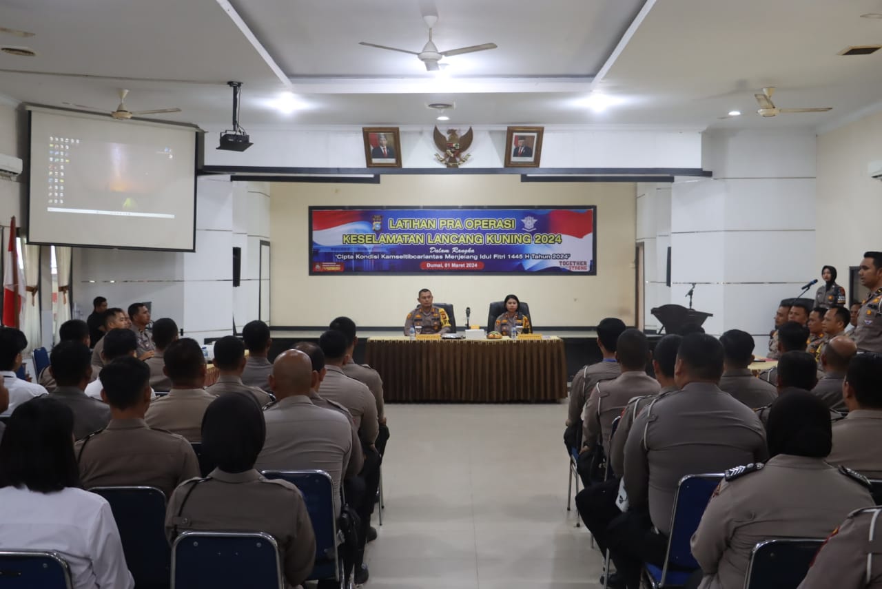 DUMAI,ikagawanews.id – Dalam rangka mendukung kelancaran Operasi Kepolisian, Polres Dumai menggelar Latihan Pra Operasi Keselamatan Lancang Kuning 2024 di Gedung Citra Waspada Polres Dumai, Jumat (1/3/2024).