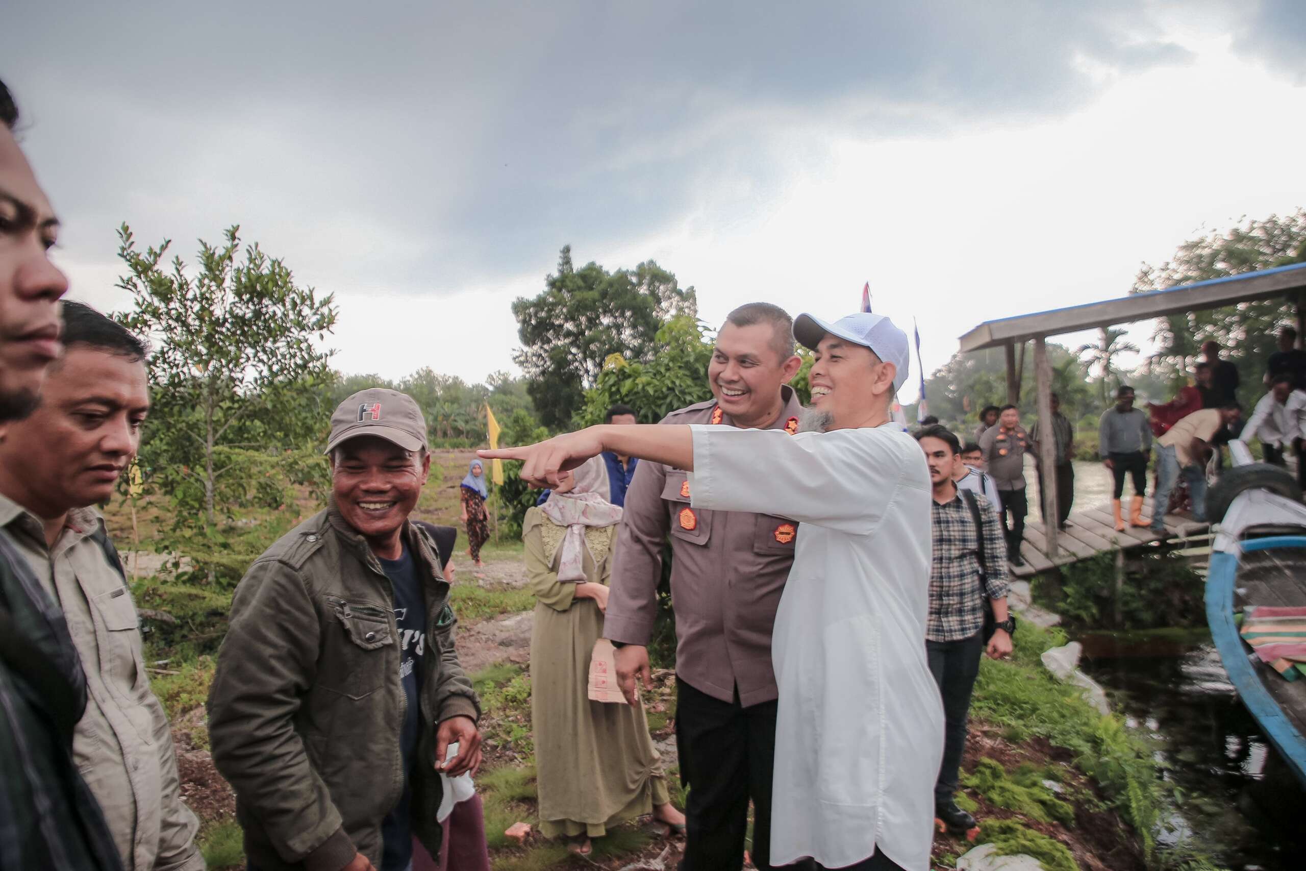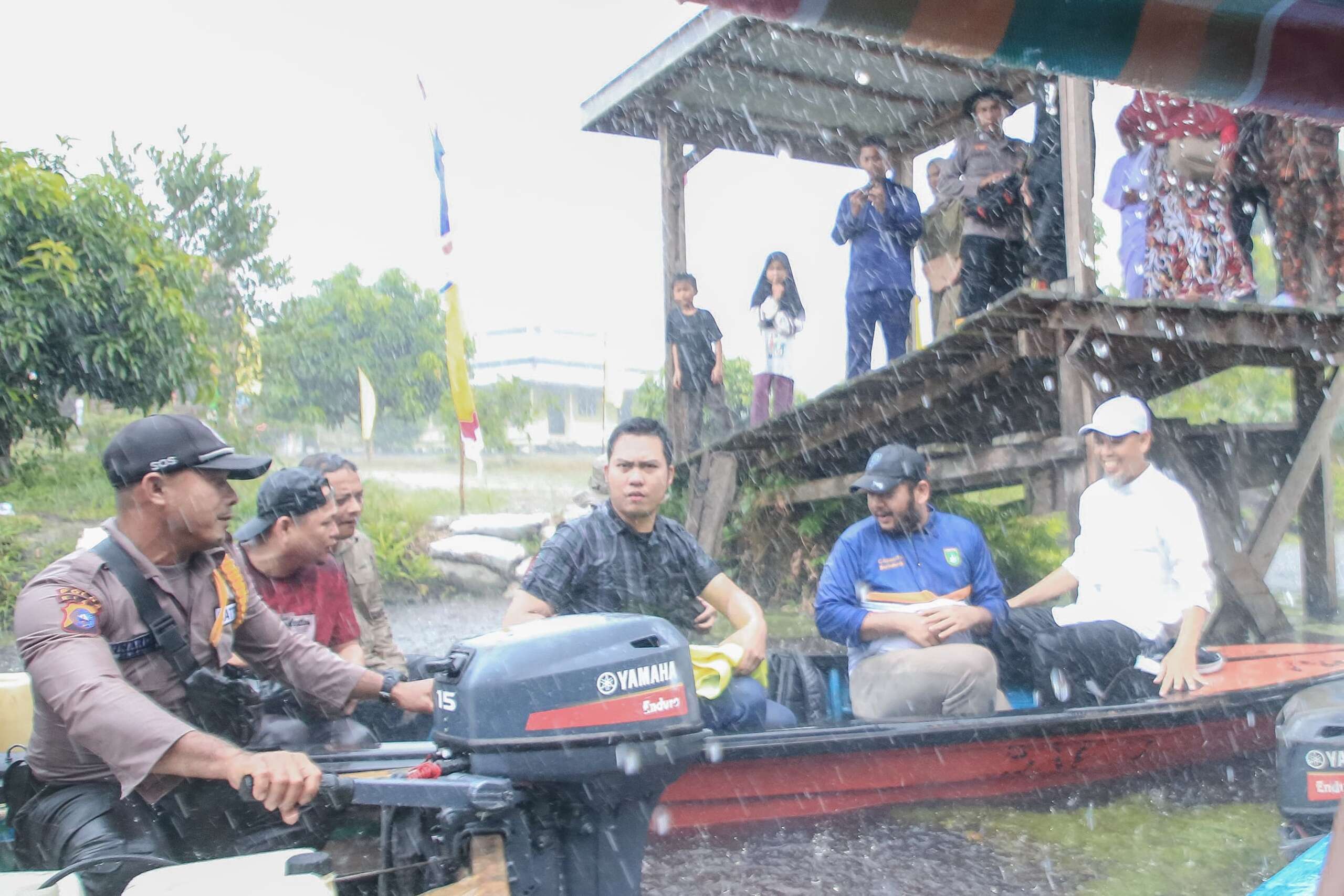 Menggunakan speed boat Satpolair Polres Dumai, rombongan mengarungi sungai dan kanal untuk tiba di titik terluar Kelurahan Batu Teritib Kecamatan Sungai Sembilan. Namun tiba-tiba hujan deras disertai angin dan petir turun mengguyur mengiringi perjalanan Kapolres Dumai dan Walikota Dumai beserta rombongan. Tak ada tenda atau tempat berteduh. Perjalanan tetap diteruskan di tengah hujan petir dan seluruh rombongan tiba dilokasi tujuan dalam keadaan basah kuyup.