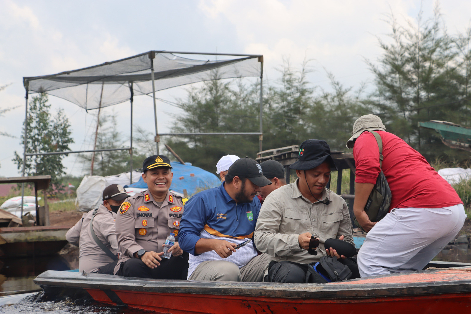 Menggunakan speed boat Satpolair Polres Dumai, rombongan mengarungi sungai dan kanal untuk tiba di titik terluar Kelurahan Batu Teritib Kecamatan Sungai Sembilan. Namun tiba-tiba hujan deras disertai angin dan petir turun mengguyur mengiringi perjalanan Kapolres Dumai dan Walikota Dumai beserta rombongan. Tak ada tenda atau tempat berteduh. Perjalanan tetap diteruskan di tengah hujan petir dan seluruh rombongan tiba dilokasi tujuan dalam keadaan basah kuyup.