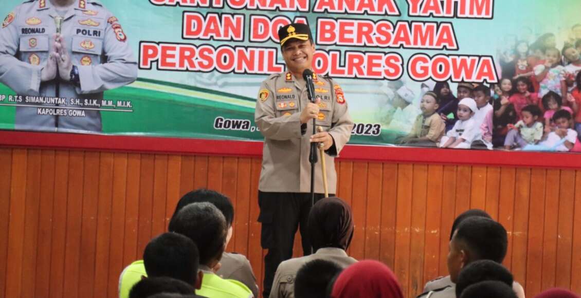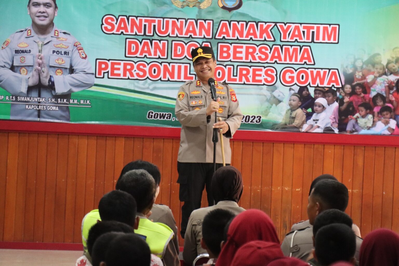 Polres Gowa Berikan Santunan Puluhan Anak Yatim dan Do’a Bersama Personel Polres Gowa