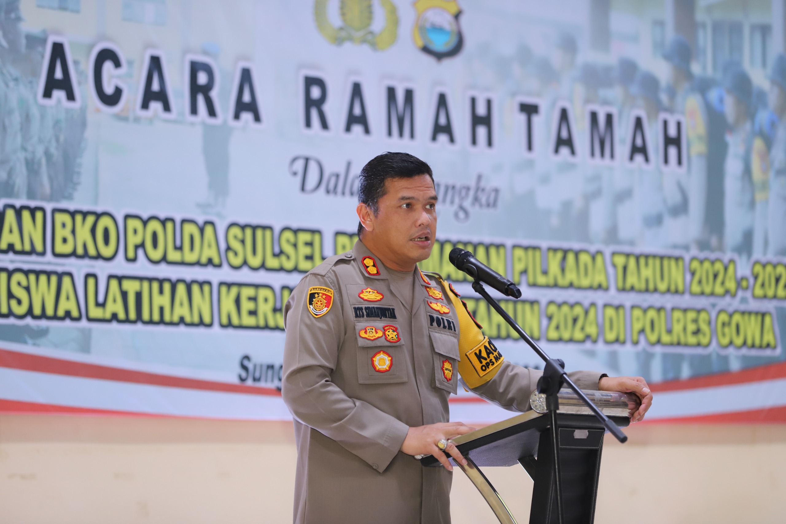 Kapolres Gowa, AKBP R.T.S. Simanjuntak, S.H., S.I.K., M.M., M.I.K., dalam sambutannya menyampaikan penghargaan dan rasa terima kasih atas dedikasi seluruh personel BKO Polda Sulsel selama bertugas menjaga keamanan dan kelancaran tahapan Pilkada di Kabupaten Gowa.