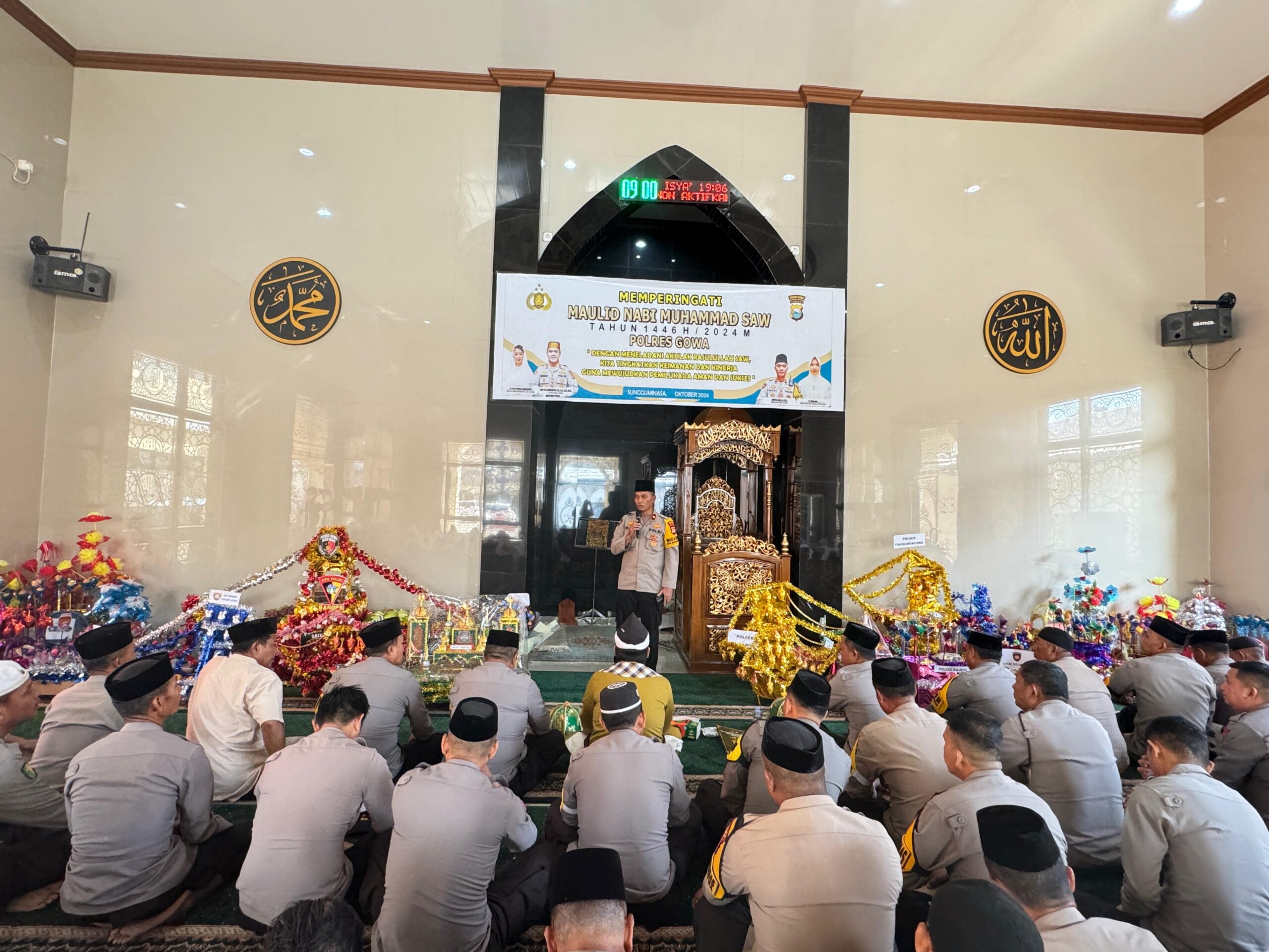 Dalam sambutannya, Wakapolres Gowa menekankan pentingnya memperingati Maulid Nabi Muhammad SAW, karena banyak hikmah dan teladan yang bisa diambil dari akhlak serta perjuangan Rasulullah SAW, khususnya dalam pelaksanaan tugas sebagai anggota Polri.