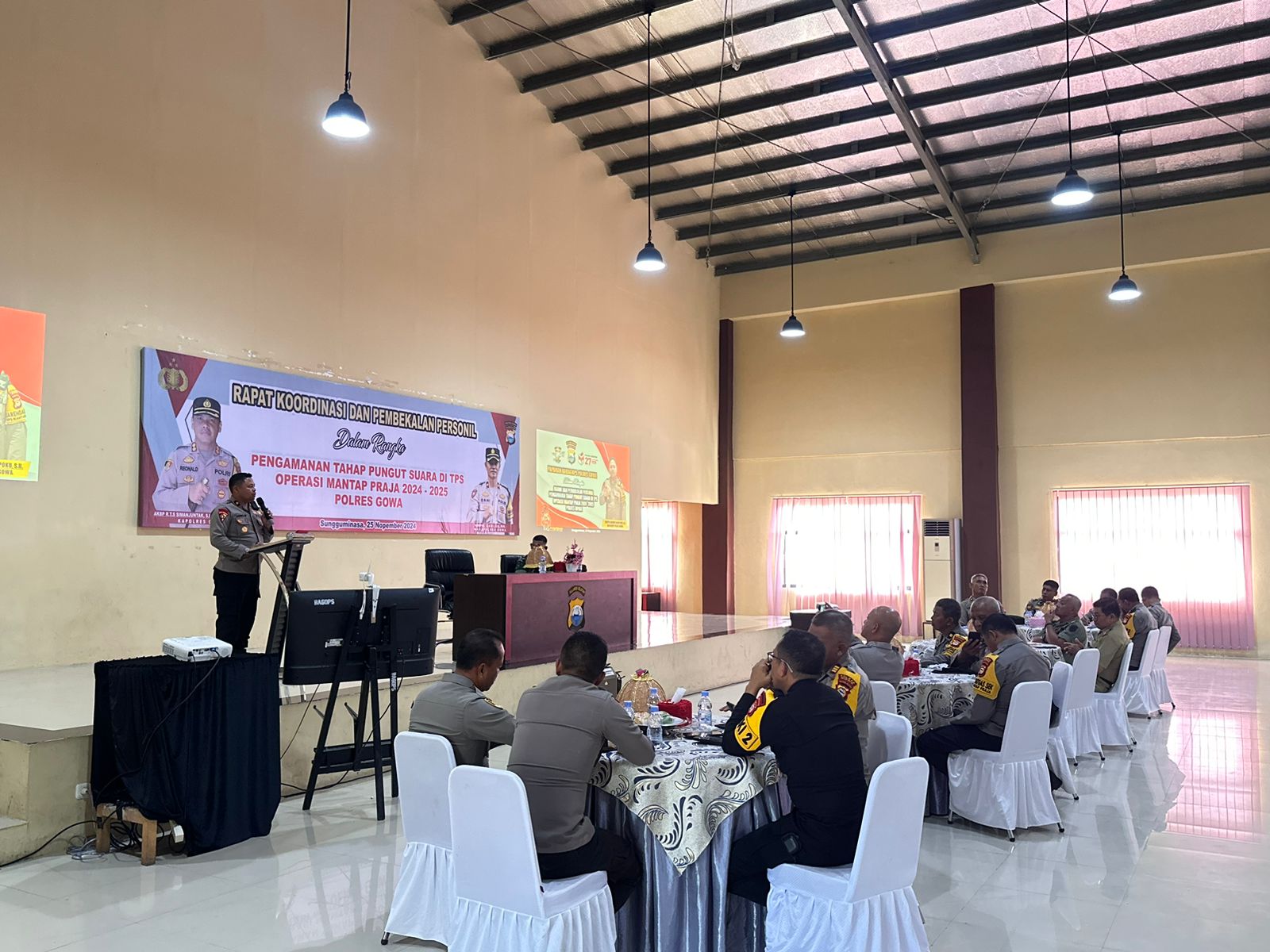 Polres Gowa Gelar Rapat Koordinasi dan Pembekalan Personel Pengamanan TPS Operasi Mantap Praja 2024-2025