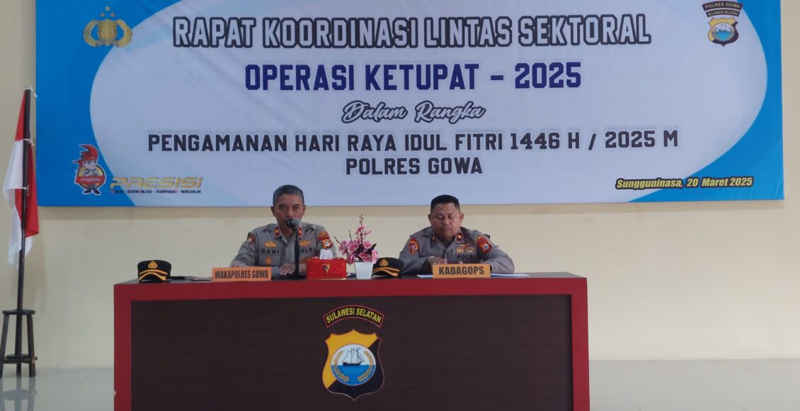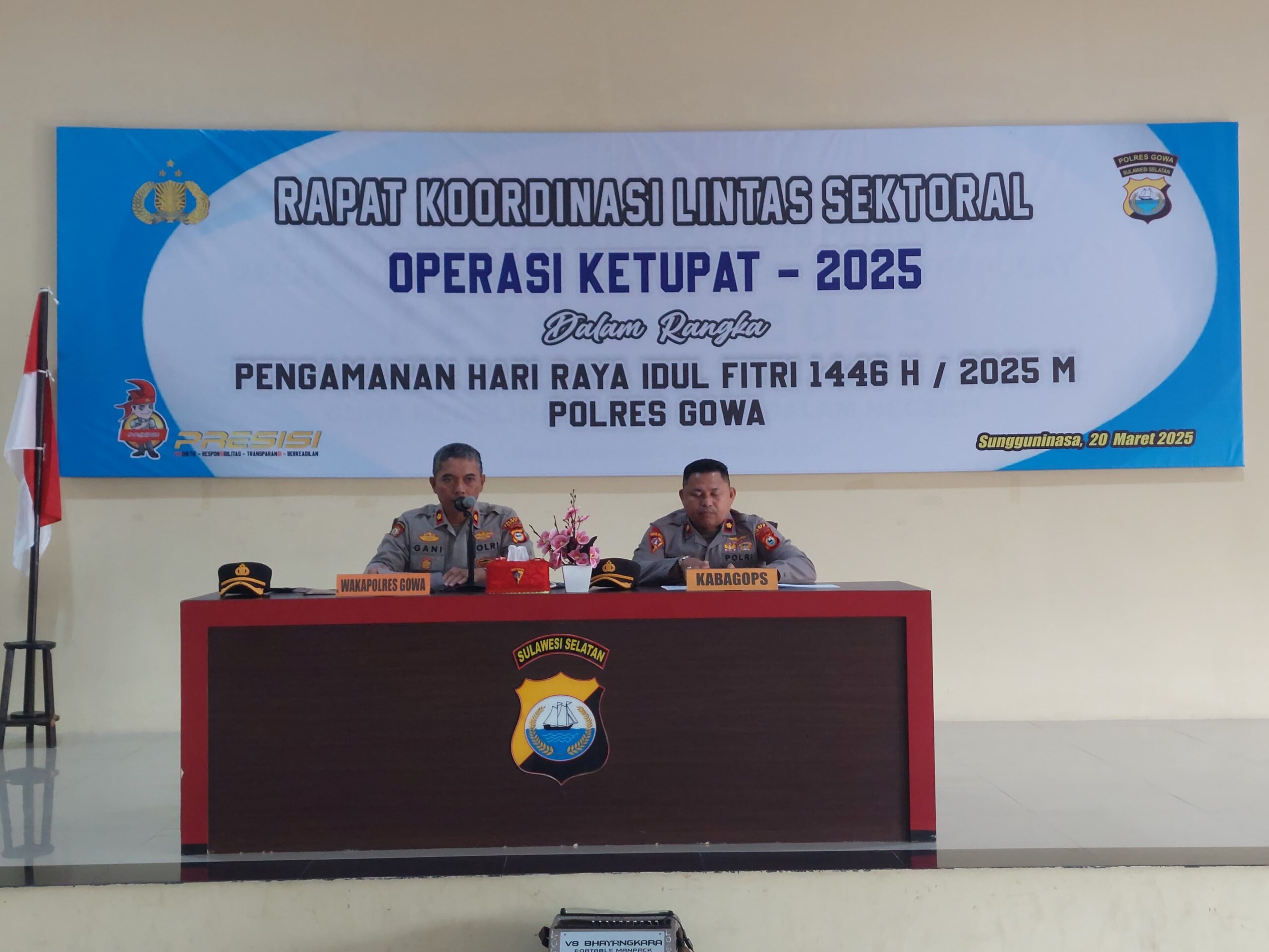 GOWA,ikagawanews.id – Dalam rangka pengamanan Hari Raya Idulfitri 1446 H/2025 M, Polres Gowa menggelar Rapat Koordinasi Lintas Sektoral Operasi Ketupat 2025 di Aula Rewako Wicaksana Laghawa Polres Gowa, Kamis (20/3/2025).