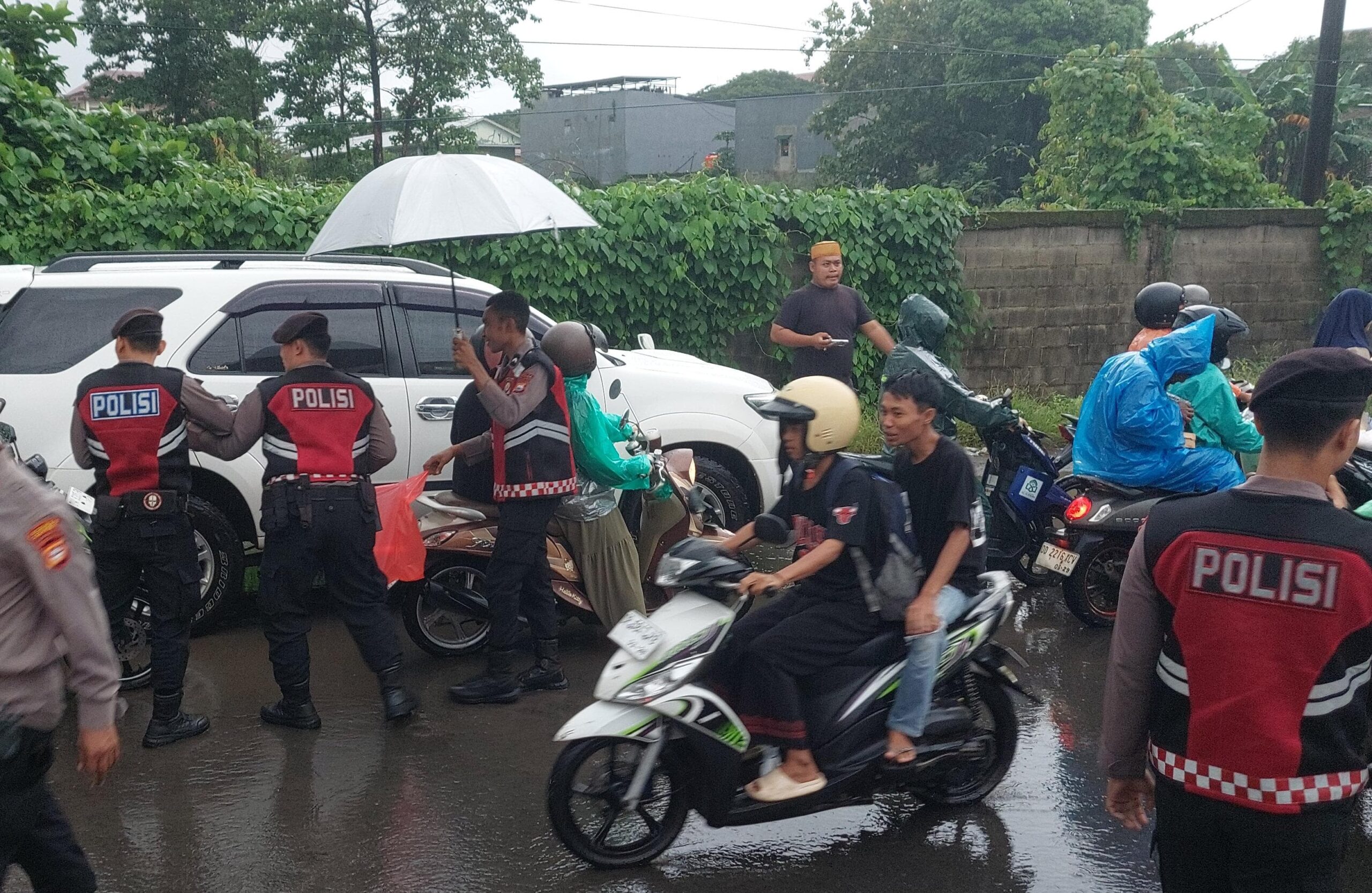 Selain membagikan takjil, personel Polres Gowa juga mengimbau masyarakat untuk tetap tertib berlalu lintas dan menjaga keamanan selama bulan Ramadan.(Humas Polres Gowa)