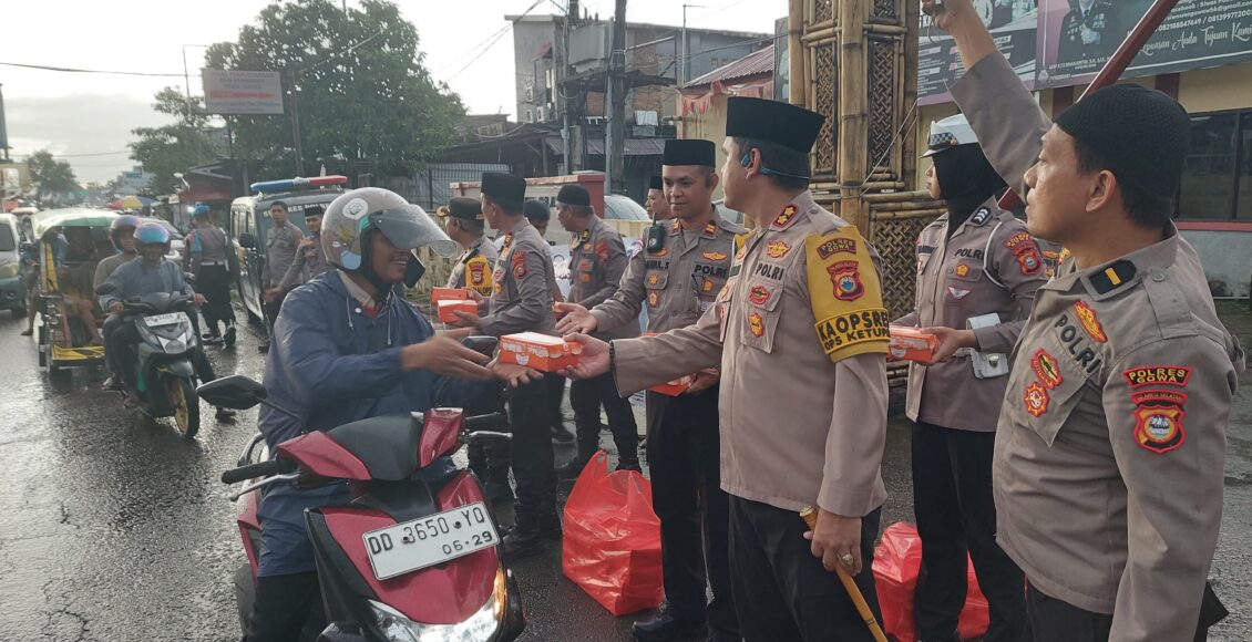 Polres Gowa Kembali Berbagi Takjil kepada Pengendara di Depan Polsek Somba Opu
