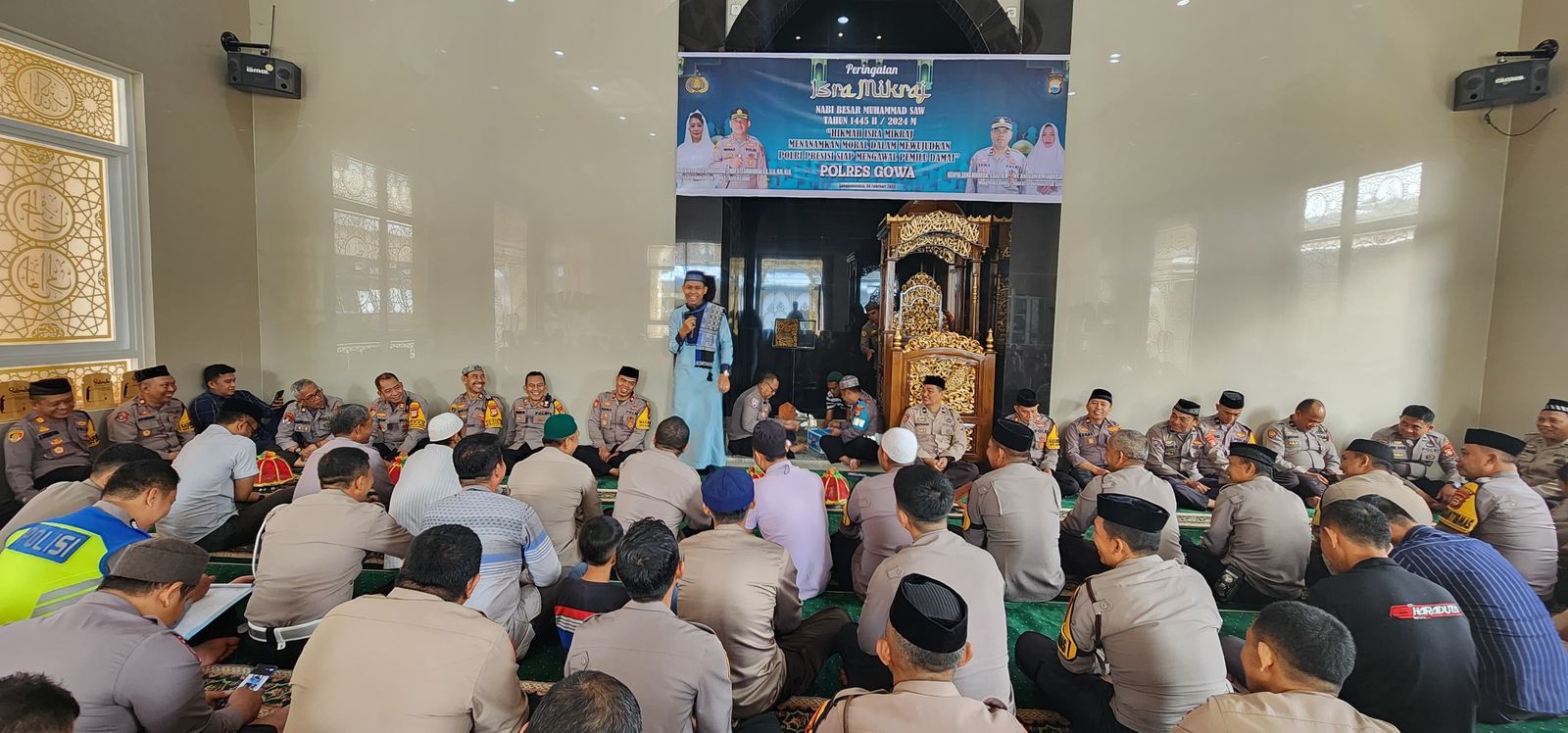 GOWA, ikagawanews.id – Polres Gowa menggelar peringatan Isra Mi’raj Nabi Muhammad SAW 1445 H/2024 M dengan tema “Hikmah Isra Mikraj Menanamkan Moral Dalam Mewujudkan Polri Presisi Siap Mengawal Pemilu Damai”. Acara berlangsung di Masjid Al Ghaffar Polres Gowa, Kamis (08/02/2024) pagi.