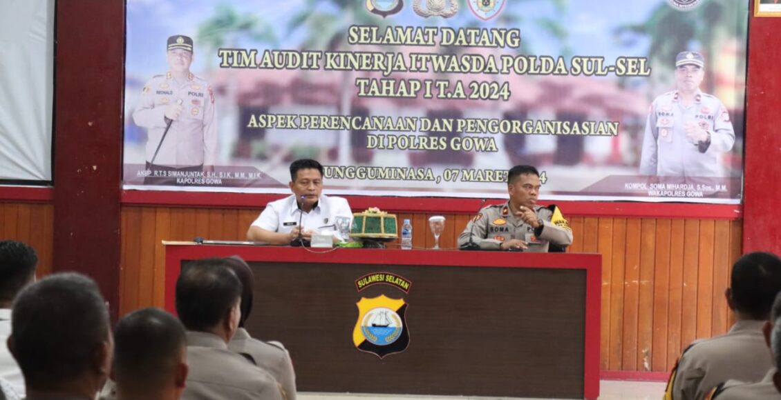 GOWA,ikagawanews.id – Polres Gowa melaksanakan kegiatan Audit Kinerja oleh Itwasda Polda Sulsel Tahap I T.A. 2024, Aspek Perencanaan dan Pengorganisasian yang berlangsung di Aula Endra Dharmalaksana Polres Gowa, Kamis (07/03/2024) pagi.