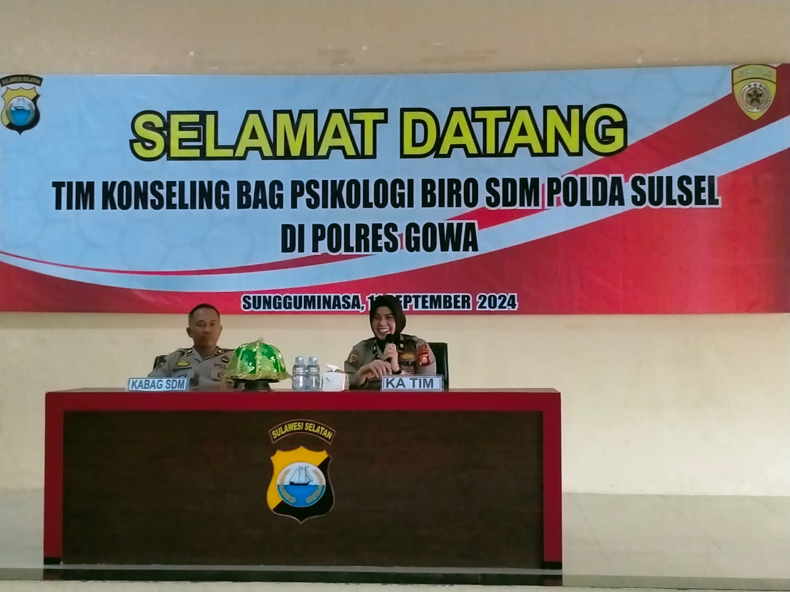 Kehadiran tim tersebut bertujuan untuk memberikan konseling dan dukungan psikologis bagi personel Polres Gowa dan jajaran Polsek di wilayah hukum Polres Gowa.