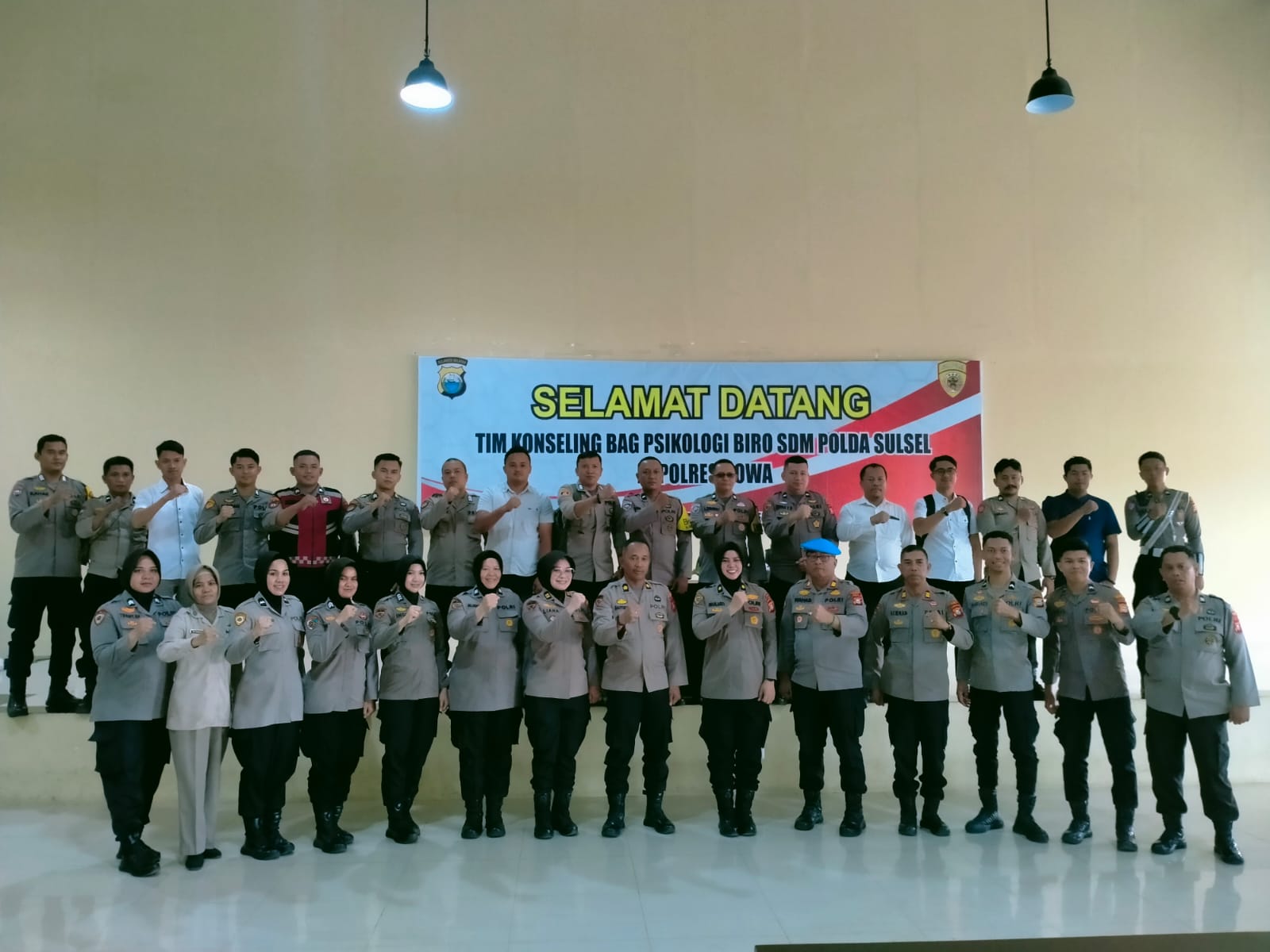 Wakapolres Gowa, KOMPOL Gani, S.H., M.H., menyampaikan apresiasinya atas kunjungan dan perhatian yang diberikan oleh Tim Konseling Bag Psikologi Biro SDM Polda Sulsel.