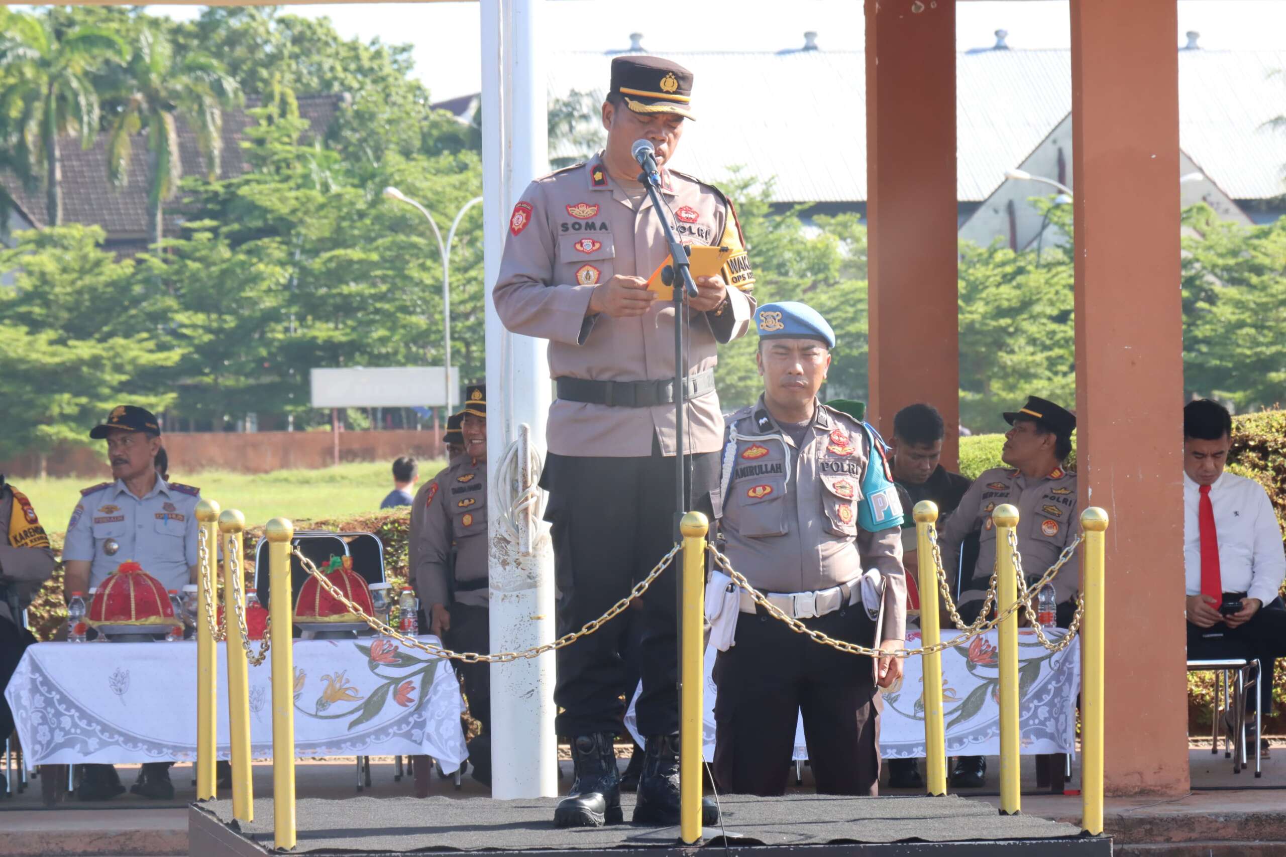 Wakapolres Gowa, Kompol Soma Mihardja, S.Sos., M.M memimpin langsung upacara apel yang berlangsung di Zona RTH Lapangan Syech Yusuf. Kegiatan ini bertujuan untuk meningkatkan kesadaran dan kepatuhan masyarakat terhadap aturan lalu lintas serta memberikan edukasi keselamatan jalan kepada pelajar.