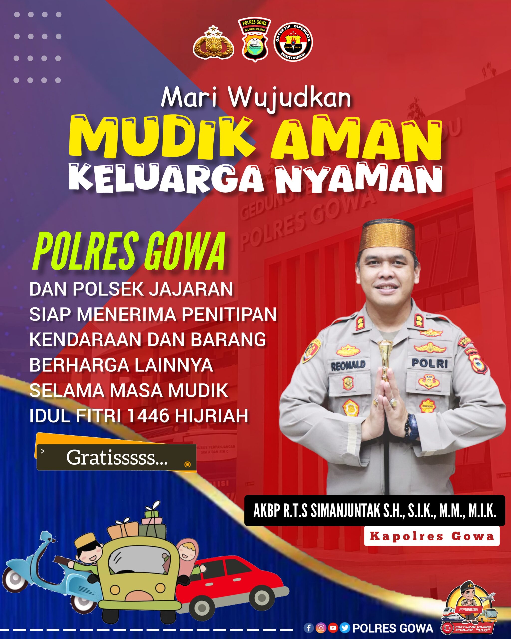 “Kami siap menerima penitipan kendaraan dan barang berharga lainnya bagi masyarakat yang akan mudik. Ini merupakan upaya kami untuk mewujudkan ‘Mudik Aman, Keluarga Nyaman’ agar warga bisa bepergian dengan tenang tanpa khawatir terhadap keamanan aset mereka,” ujar Kapolres Gowa.