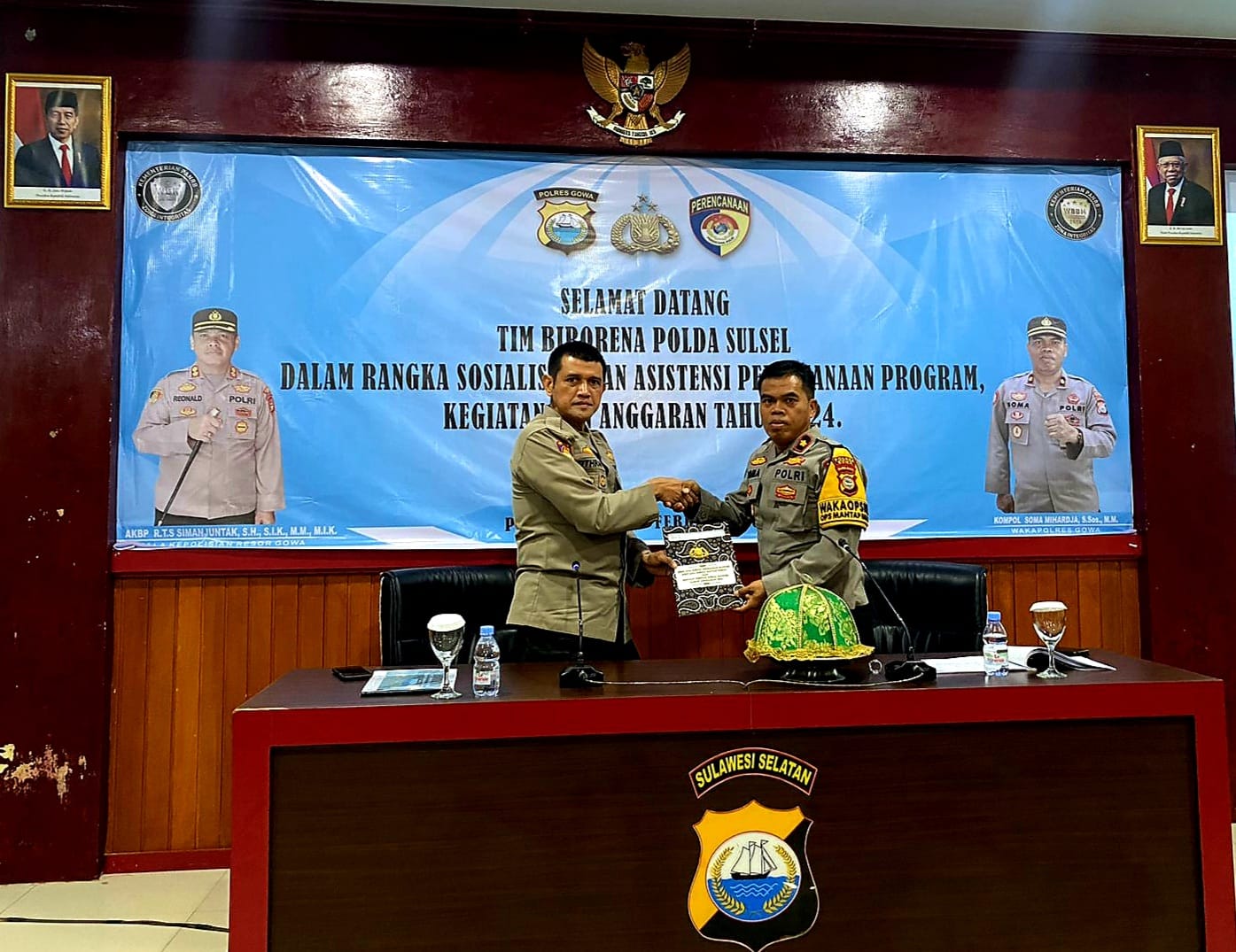Polres Gowa Terima Kunjungan Tim Biro Rena Polda Sulsel untuk Sosialisasi dan Asistensi Perencanaan T.A. 2024