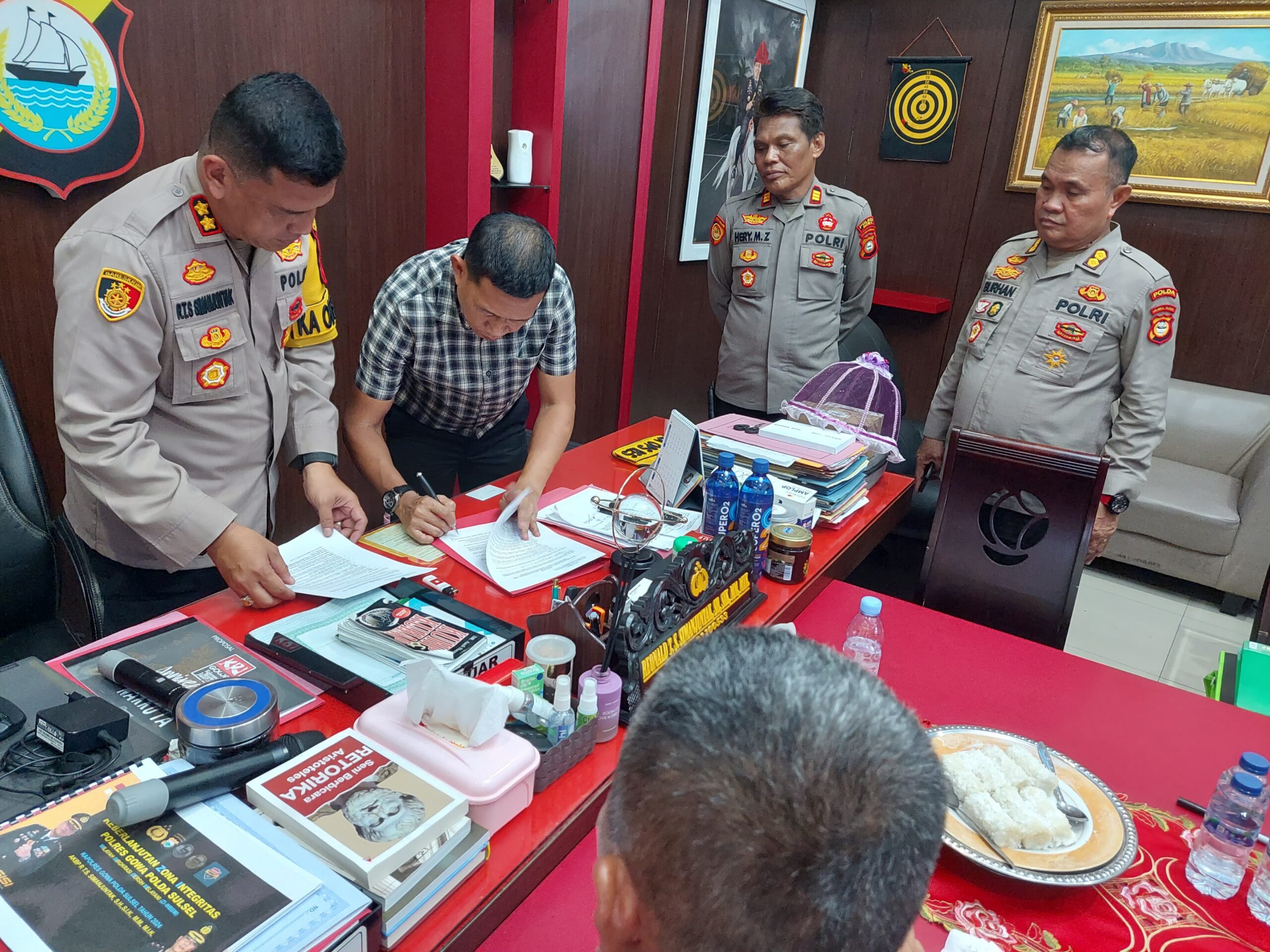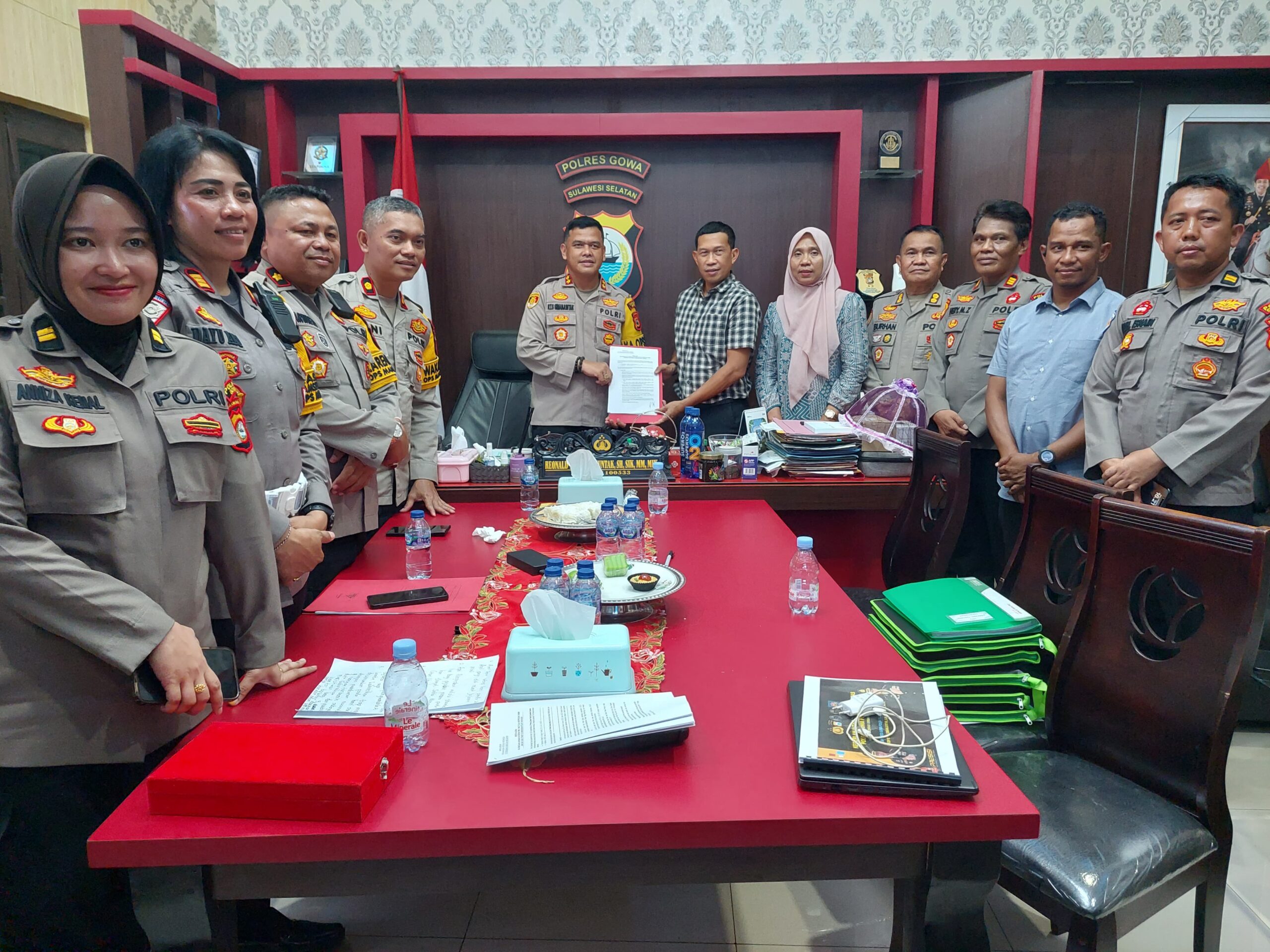 Setelah peninjauan lapangan, kegiatan dilanjutkan dengan proses verifikasi data Zona Integritas (ZI), Wilayah Bebas dari Korupsi (WBK), dan WBBM di ruang kerja Kapolres Gowa.