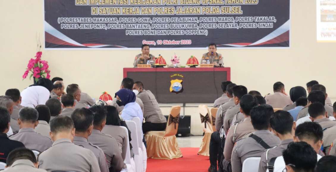 GOWA,ikagawanews.id – Polres Gowa menerima kedatangan Tim SOPS (Staf Kapolri Bidang Operasional) Mabes Polri dalam rangka Pengkajian Tentang Penjabaran dan Implementasi Kebijakan Polri Bidang Opsnal Tahun 2023 di Satuan kerja dan Polres Jajaran Polda Sulsel. Kedatangan tim tersebut berlangsung di Aula Rewako Polres Gowa, Selasa (10/10/1023).