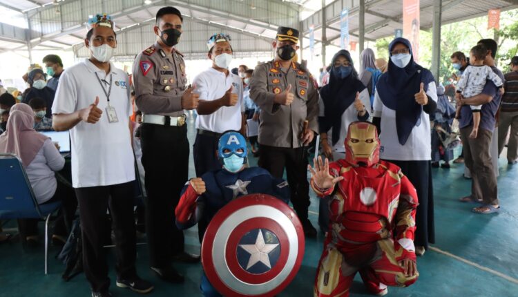 GRESIK,ikagawanews.id – Ratusan pelajar SD di Gresik menerima dosis vaksin di sekolah. Polres Gresik bersama Captain America dan Iron Man datang ke aula sekolah meninjau jalannya vaksinasi anak.