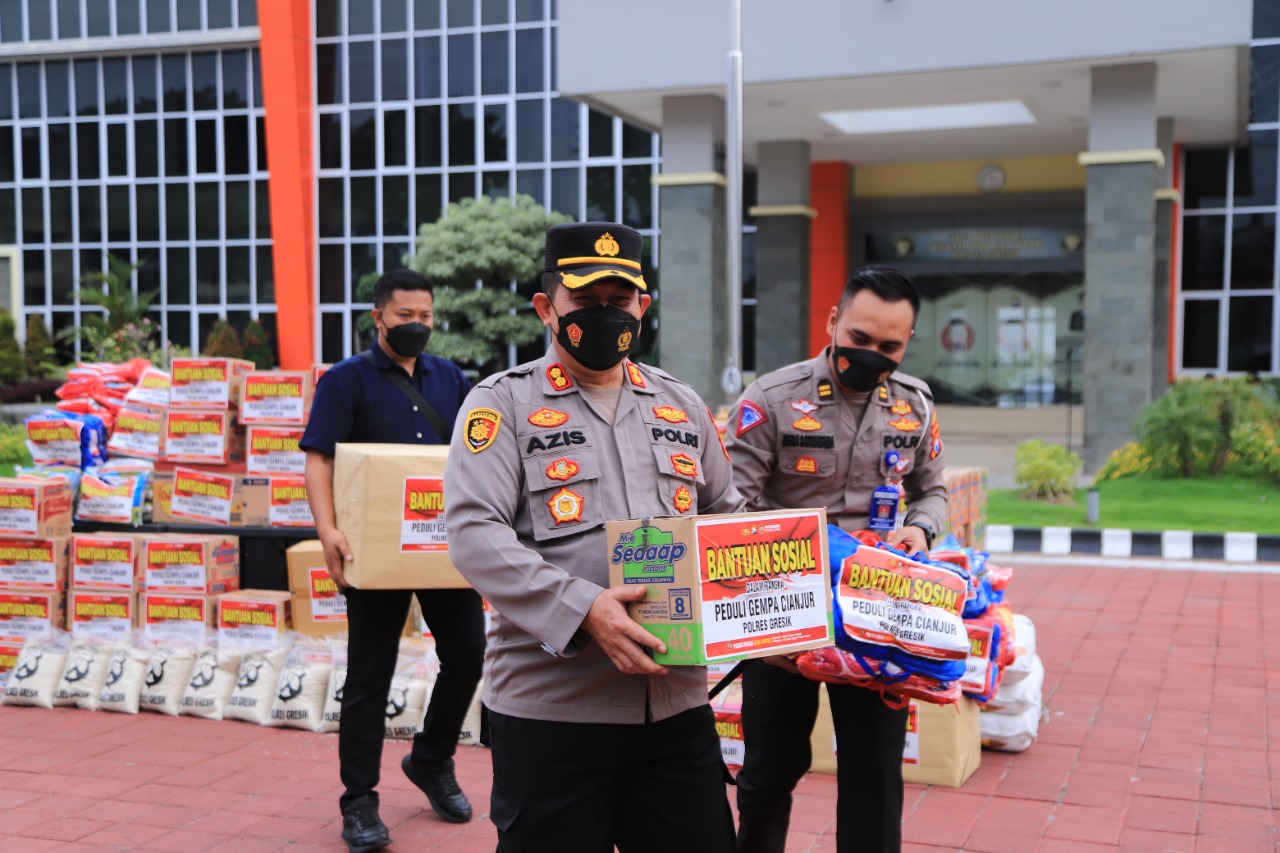 GRESIK ,ikagawanews.id – Respon cepat dilakukan Polres Gresik sebagai bentuk kepedulian terhadap para korban gempa bumi di Cianjur, Jawa Barat. Kapolres Gresik AKBP Mochamad Nur Azis memberangkatkan sebanyak 1.500 paket bantuan untuk para korban langsung dari halaman Mapolres Gresik, Kamis (24/11/2022).
