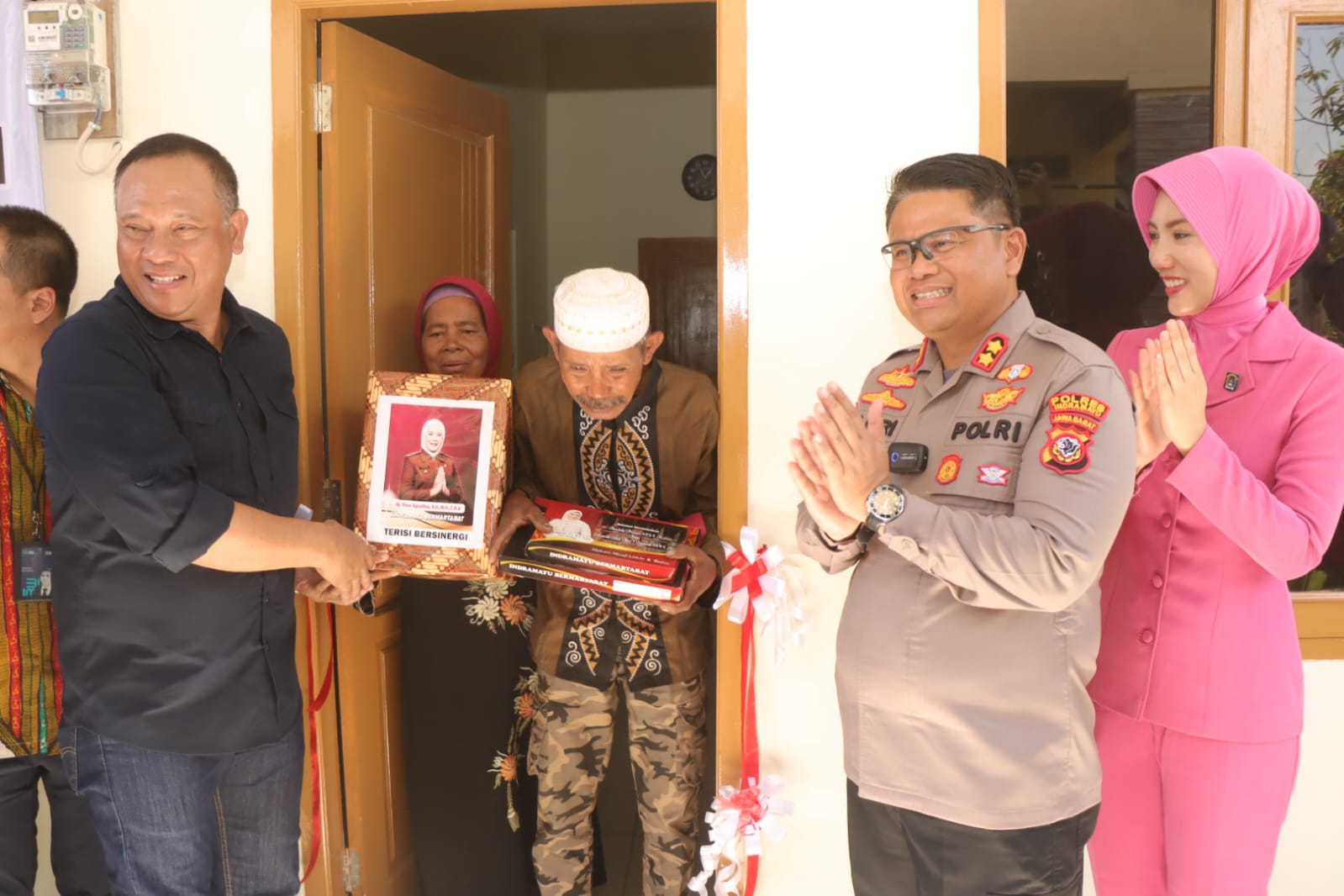Tahapan peresmian dimulai dengan penyerahan replika kunci rumah oleh Kapolres Indramayu kepada Bapak Arun, yang merupakan salah satu penerima manfaat program Rumah Layak Huni di wilayah Kecamatan Terisi, Kabupaten Indramayu.