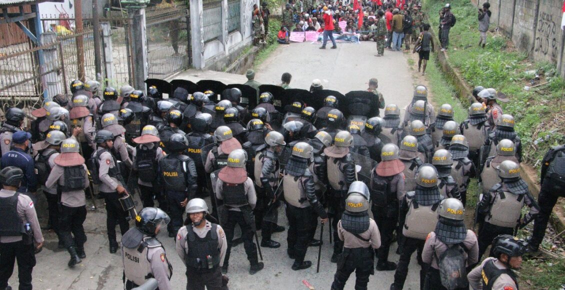 Aparat akhirnya melakukan pendorongan hingga massa mundur ke arah Jalan Pos 7 Atas dan membubarkan diri menuju kampus STT GIDI Walter Post. Aksi berlanjut dalam bentuk mimbar bebas hingga pukul 12.15 WIT sebelum akhirnya massa benar-benar meninggalkan lokasi.