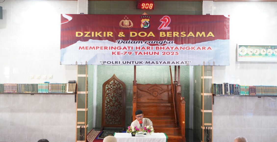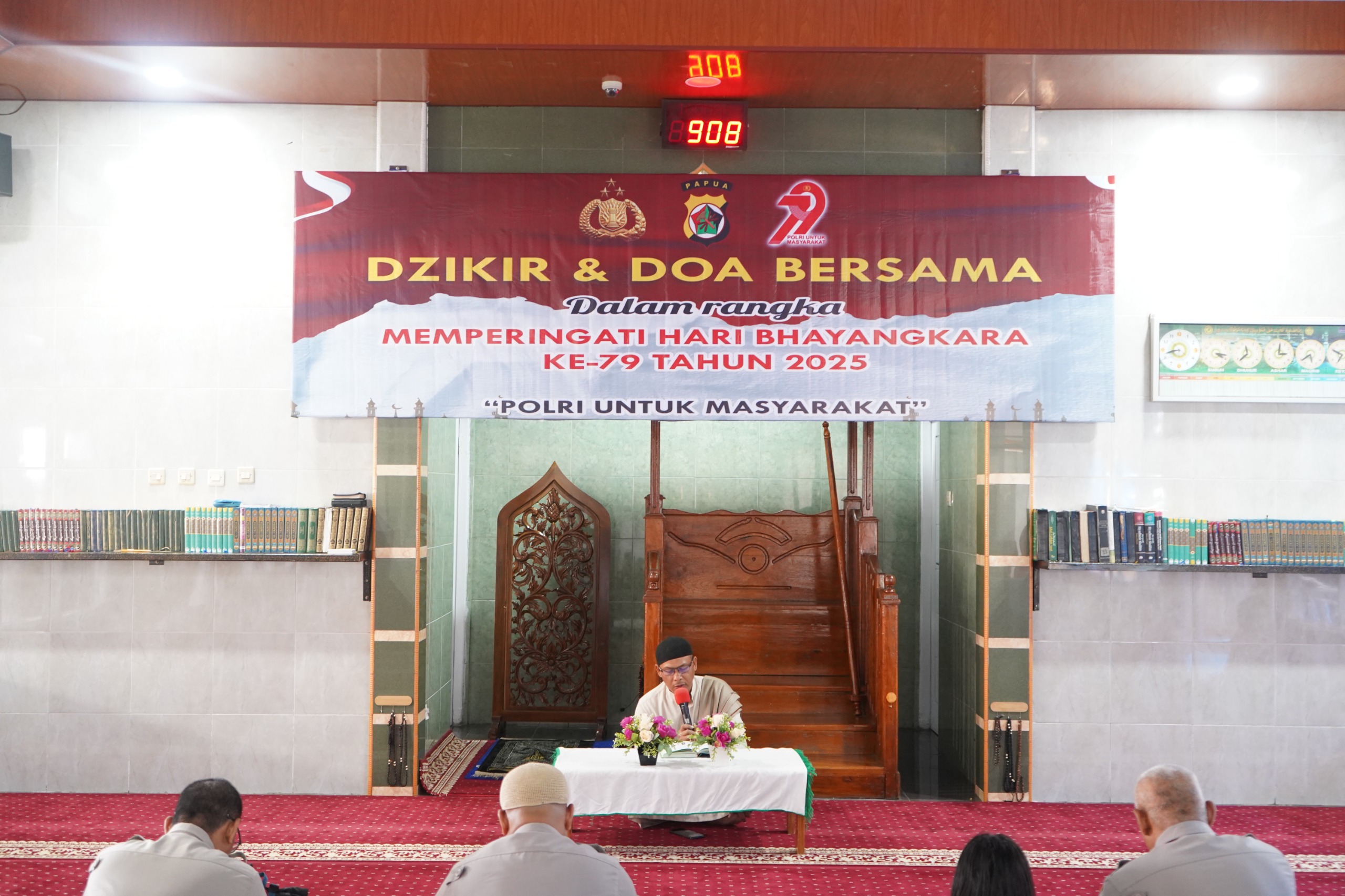 Kapolres Jayapura AKBP Umar Nasatekay,S.I.K menyampaikan bahwa kegiatan dzikir, doa, dan persembahyangan ini merupakan rangkaian ibadah lintas agama dalam memperingati Hari Bhayangkara ke-79, dengan mengangkat tema “Polri Untuk Masyarakat”.