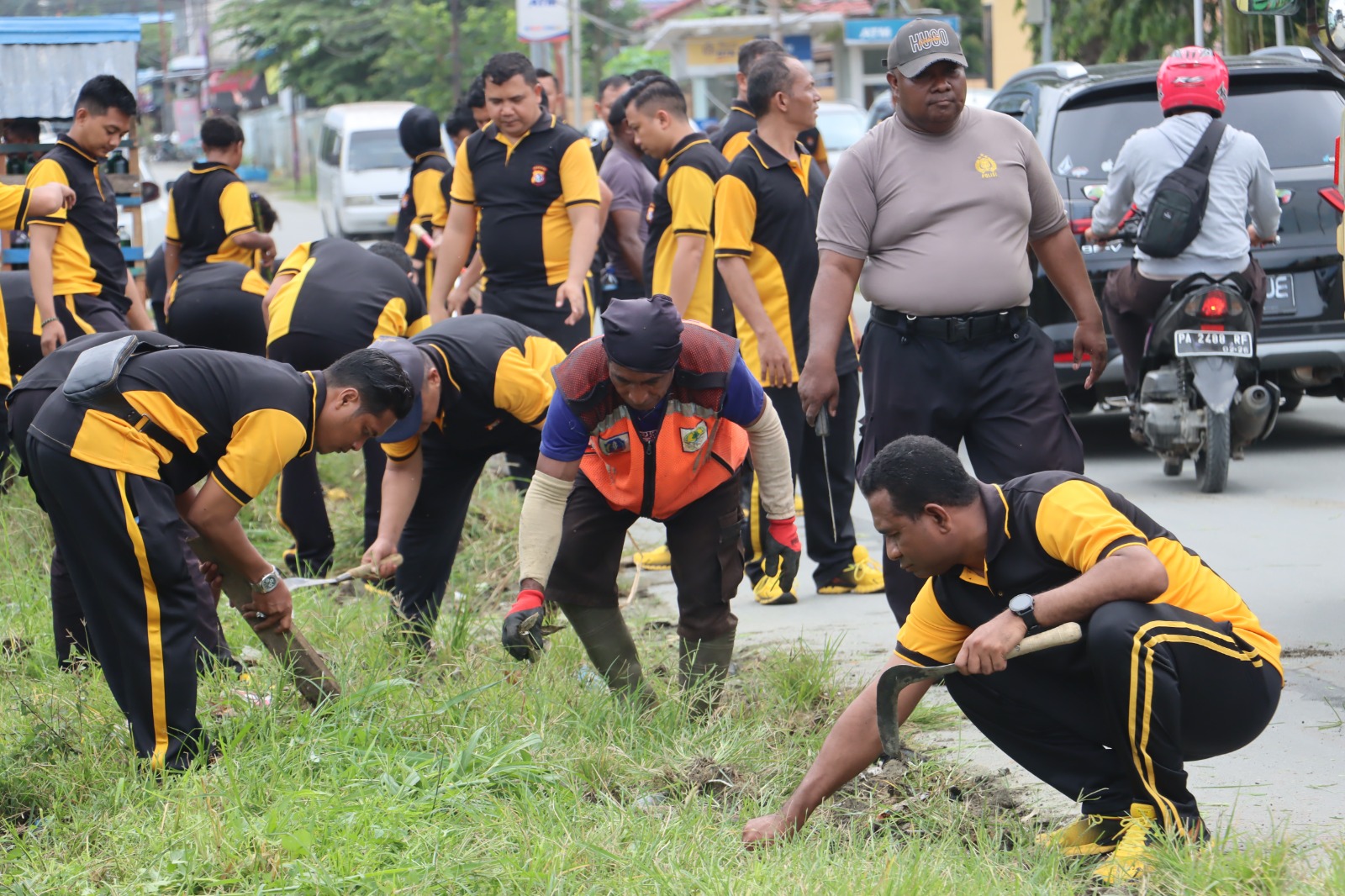 Polres Jayapura Gelar Kerja Bakti Menyambut HUT Republik Indonesia ke 78