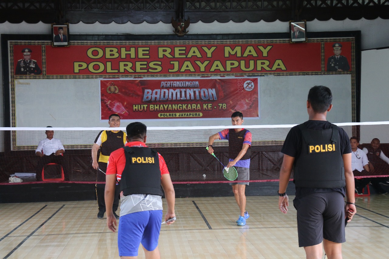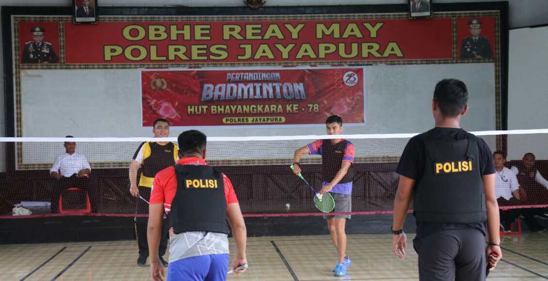 Setelah sebelumnya mengadakan lomba gawang mini dengan keunikannya, kembali kali ini Polres Jayapura menggelar lomba bulutangkis ganda putra gabungan satuan kerja, yang persyaratannya juga unik dengan mewajibkan peserta memakai rompi pelindung.
