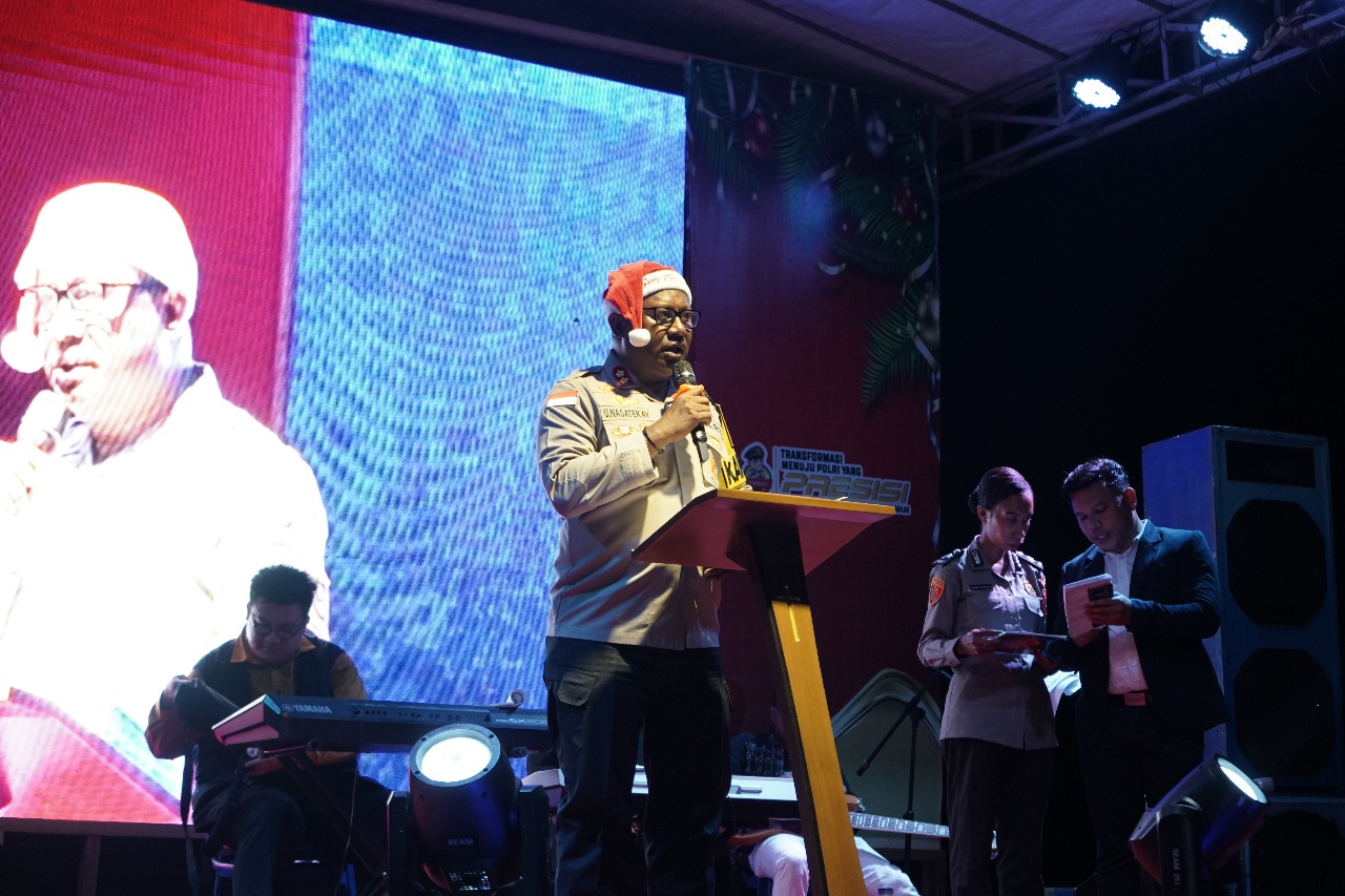 Kapolres Jayapura AKBP Umar Nasatekay, S.I.K dalam sambutannya menyampaikan bahwa perayaan Natal dan doa lintas agama ini bukan hanya sebagai bentuk ibadah dan ungkapan syukur, tetapi juga menjadi momentum untuk memperkuat nilai toleransi, persatuan, serta semangat kebhinekaan di Kabupaten Jayapura.