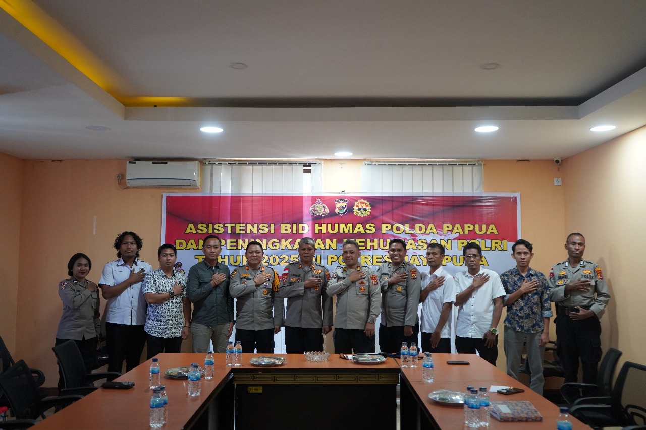 Sementara itu, AKP Sebastianus A. Anoith dalam sambutannya menyampaikan permohonan maaf dari Kabid Humas Polda Papua yang berhalangan hadir. Ia menegaskan bahwa tugas kehumasan kini tidak hanya melekat pada fungsi tertentu, namun sudah menjadi tanggung jawab seluruh personel Polri.