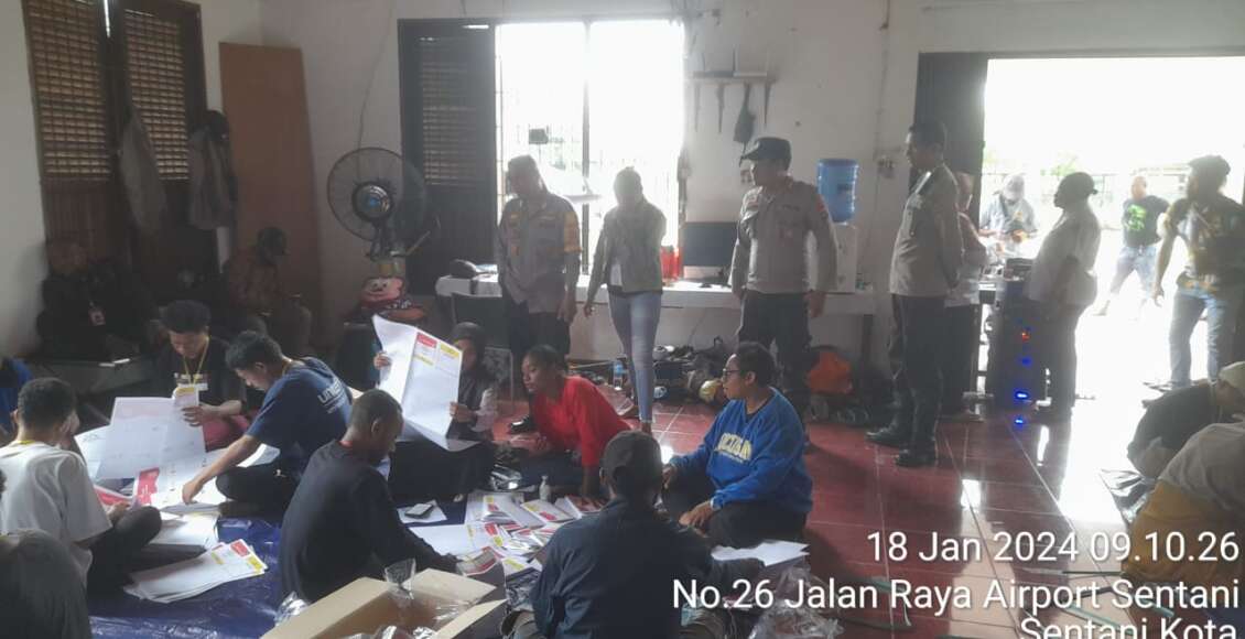 Polres Jayapura Laksanakan Pengamanan Pelipatan Surat Suara Pemilu 2024 di Gudang Logistik KPU Sentani