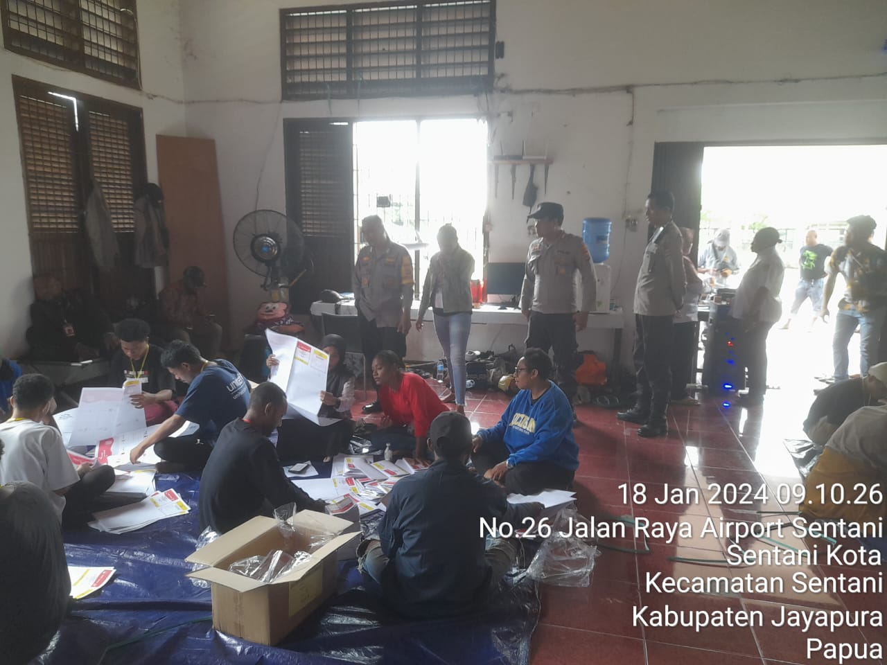 SENTANI,ikagawanews.id – Dalam rangka menjaga ketertiban dan keamanan, Anggota Polsek Sentani Kota, yang dipimpin oleh Aiptu Denri Gau, Bripka Muslim, Brigpol Enggelina Ondikeleuwu, dan Briptu Oktari Zella S., melaksanakan giat Pengamanan Pelipatan Surat Suara Pemilu 2024 di Gudang Logistik KPU Sentani, (19/01).