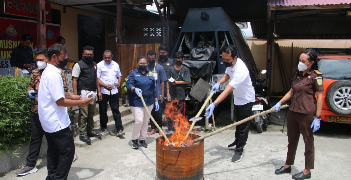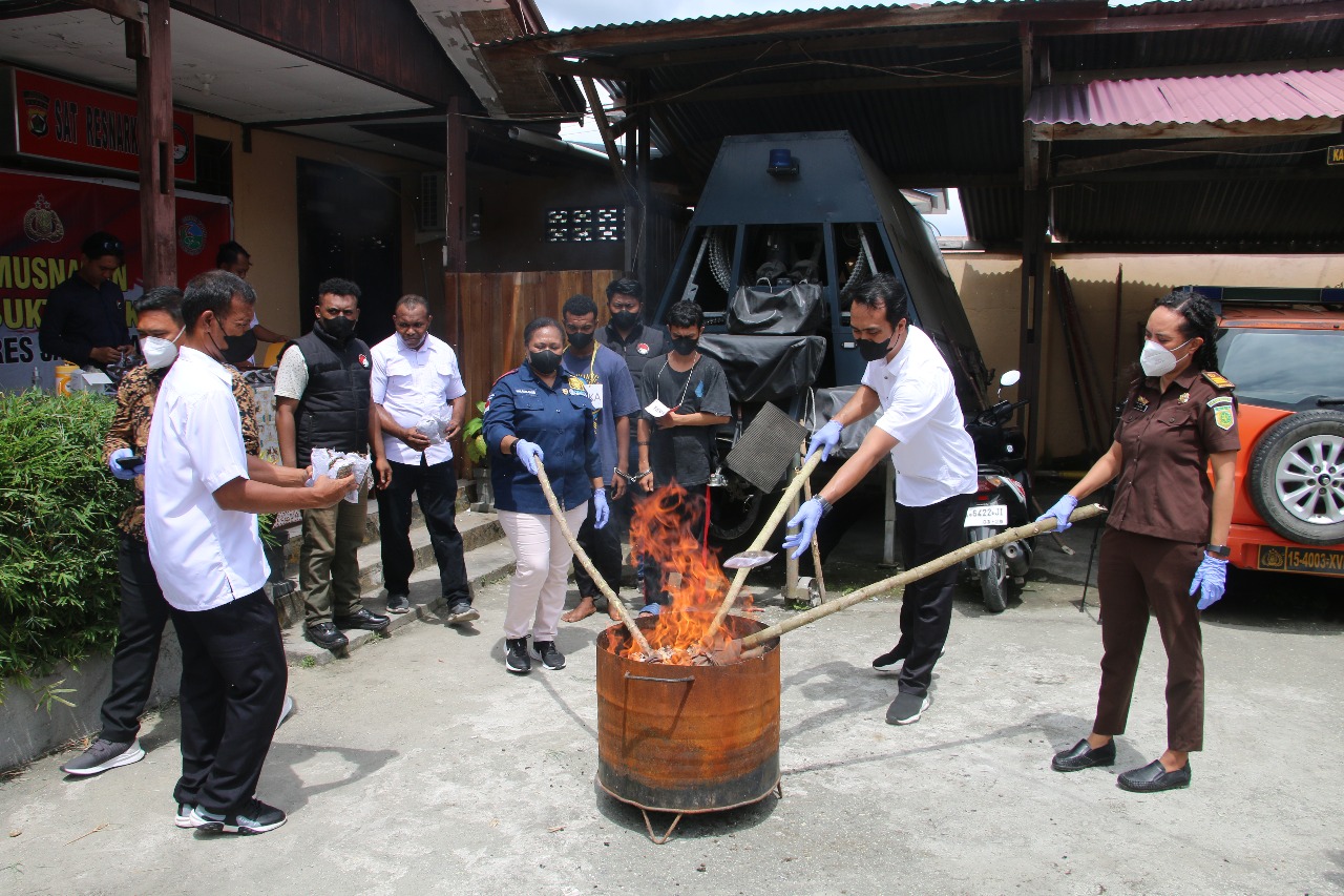 Puncak kegiatan berlangsung saat seluruh barang bukti ganja dimusnahkan dengan cara dibakar di hadapan para saksi dari kepolisian, kejaksaan, dan advokat.
