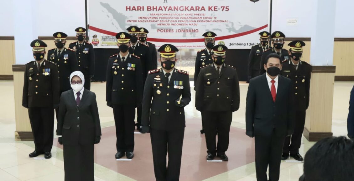 Jombang,IKAGAWANEWS.ID – Polres Jombang menggelar upacara peringatan Hari Bhayangkara ke-75 secara virtual (Live streaming) dengan inspektur upacara Presiden Republik Indonesia Joko Widodo, bertempat di Gedung Graha Bhakti Bhayangkara Mapolres Jombang, (01/07/2021) pagi.