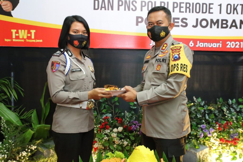 Kemudian, dilaksanakan tasyakuran dalam rangka UKP kenaikan pangkat periode 1 Januari 2021 Polres Jombang.